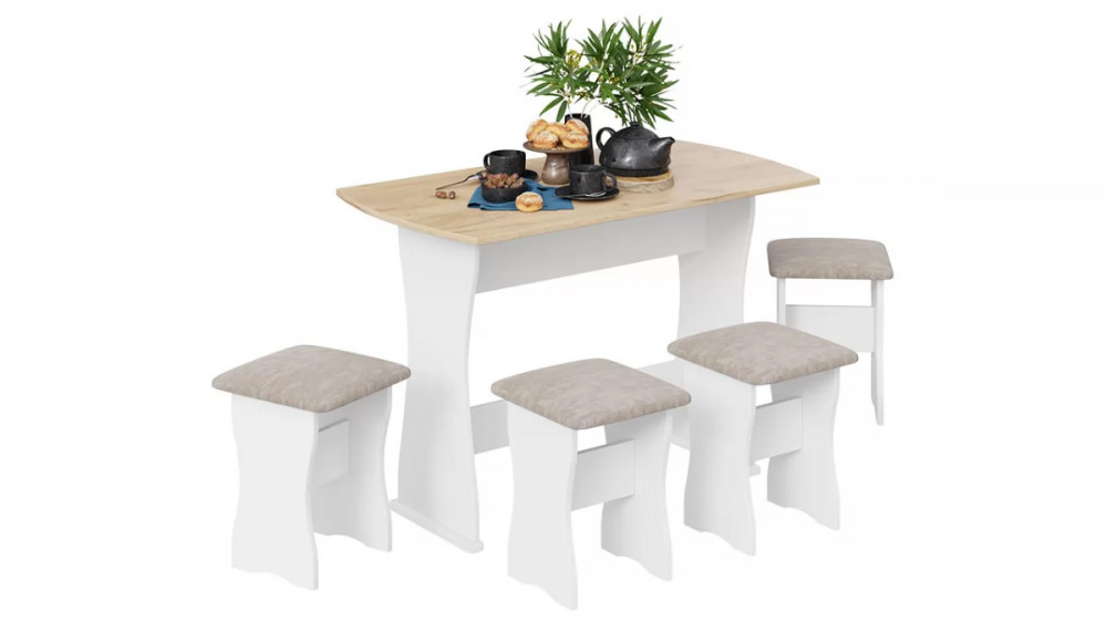 Дополнительная информация: Комплектация : стол + 4 табурета, материал мягкого сидения - кожзам.
