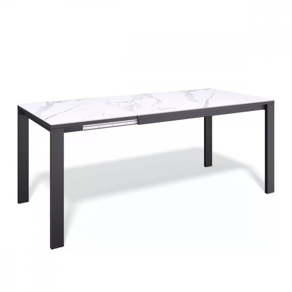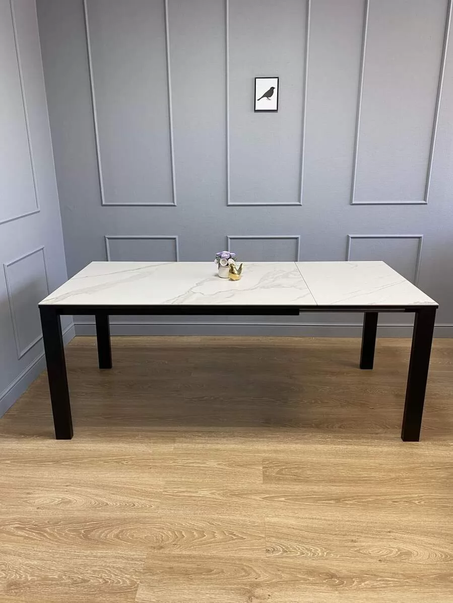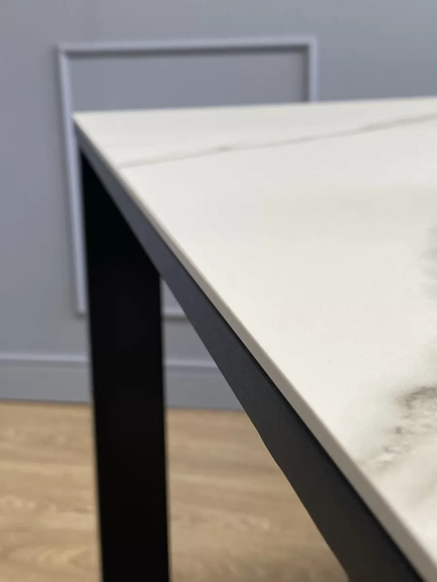 Стол KENNER BL1300 цвет черный, столешница - керамика белая. Один из самых удобных столов в ежедневном использовании. Столешница сплошная, без стыков. Опоры стоят максимально по краям - оставляют место под 2 больших стула или полукресла. Механизм "телескопического раздвижения", раскладка вместе с опорами. Даже в разложенном состоянии опоры остаются по краям, не мешают сидеть. Огромная вставка так же с керамикой! В разложенном виде стол вмещает по 4 стула с каждой широкой стороны.
