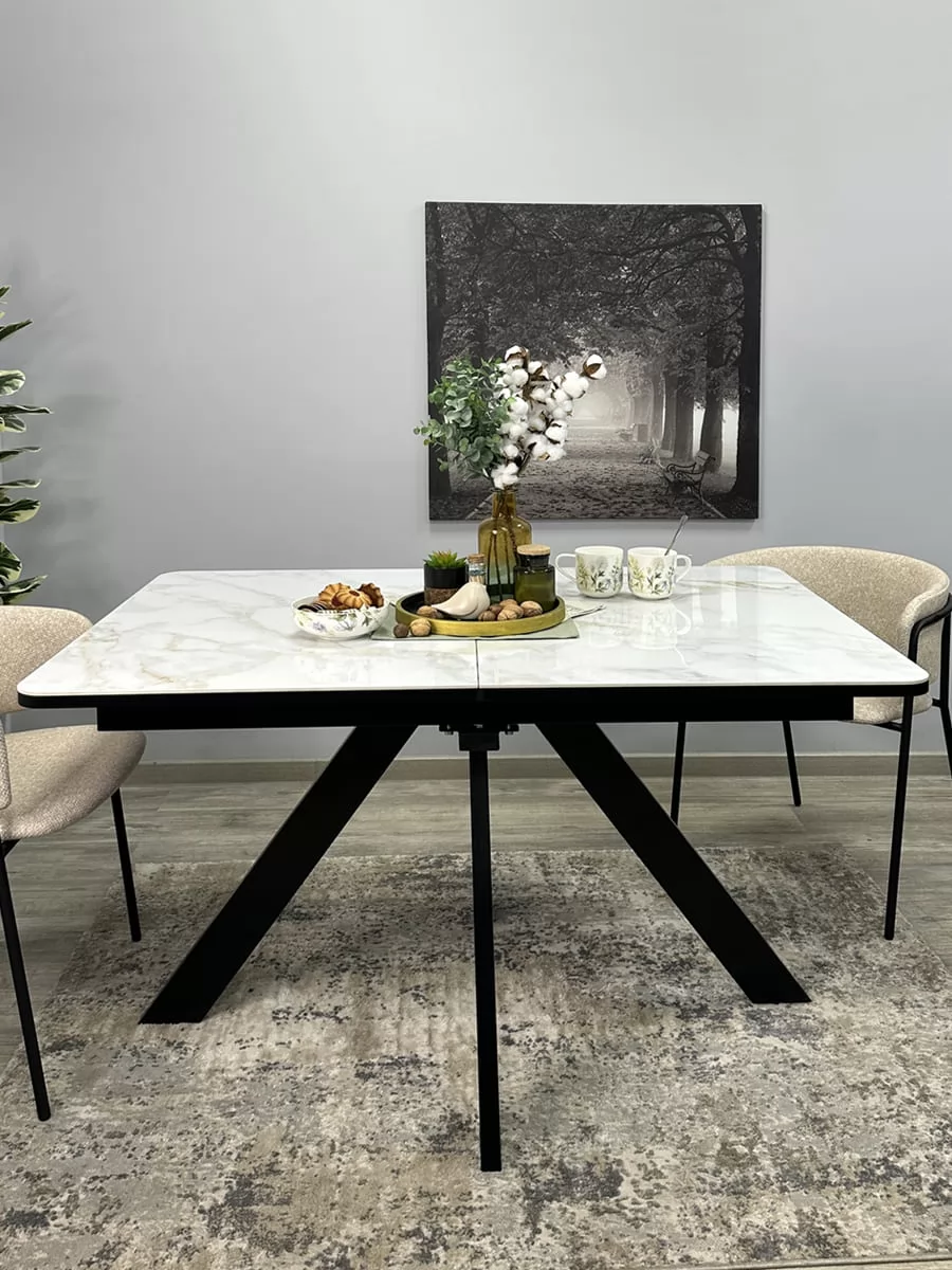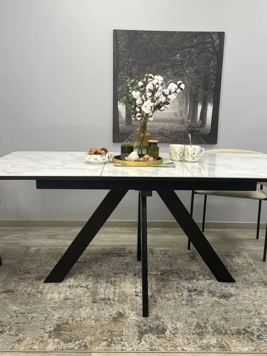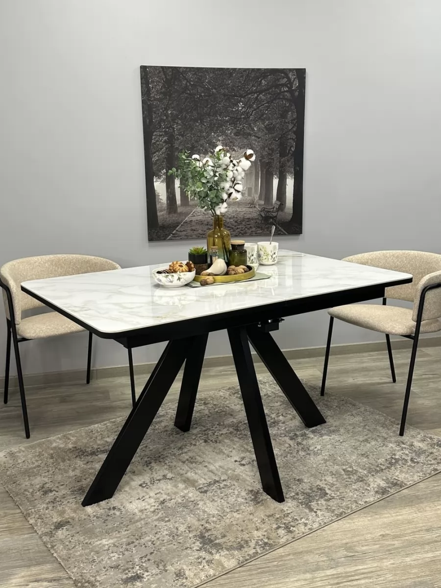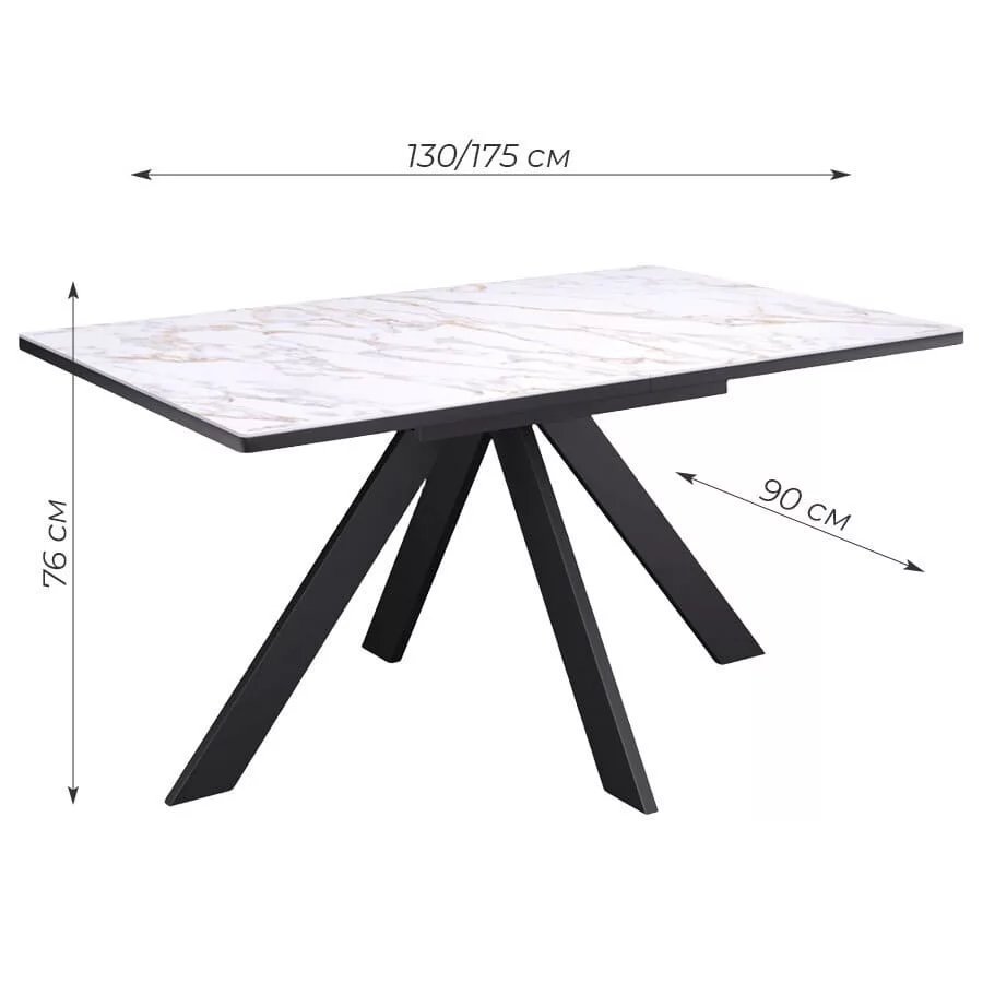 Стол Kenner DL1300 чёрный/керамика белый глянец в Тюмени