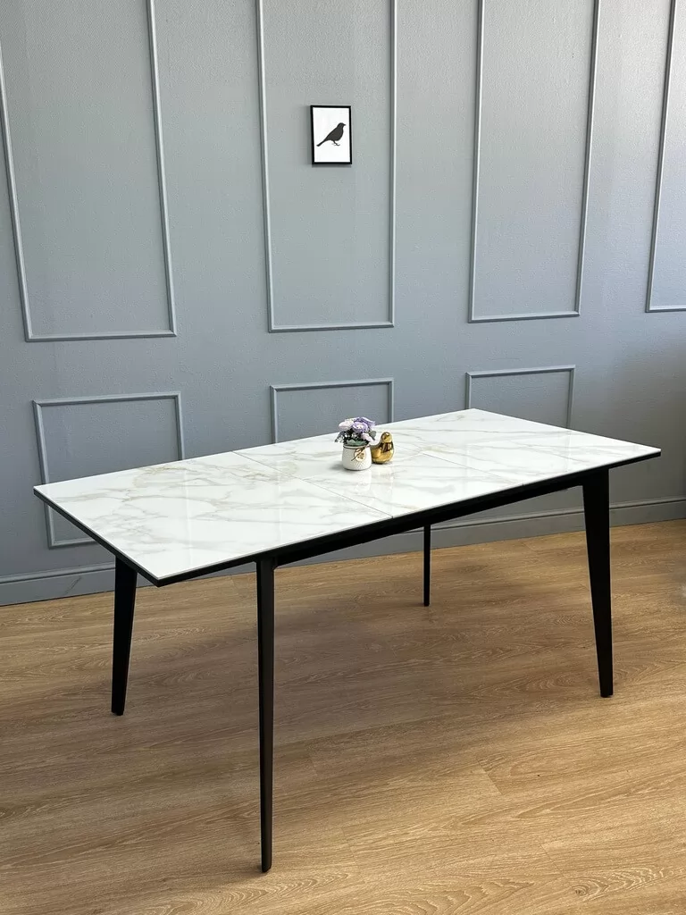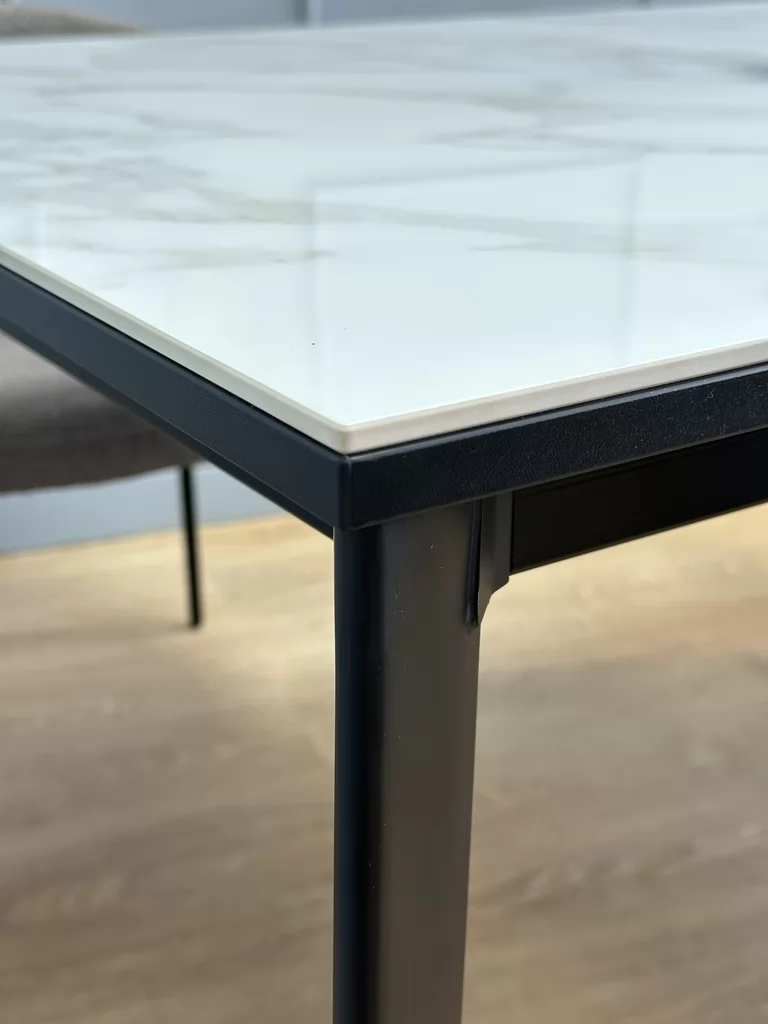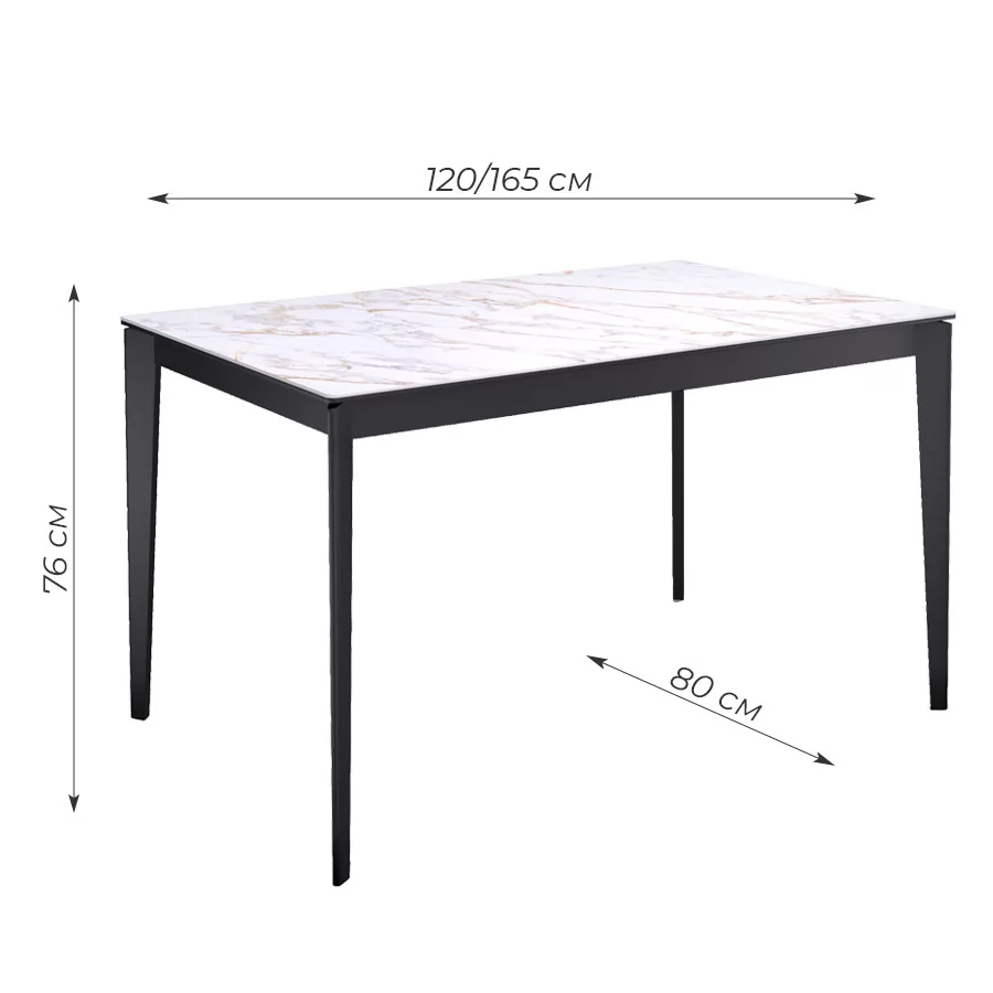 Стол Kenner KR1200 чёрный/керамика мрамор белый глянец в Тюмени