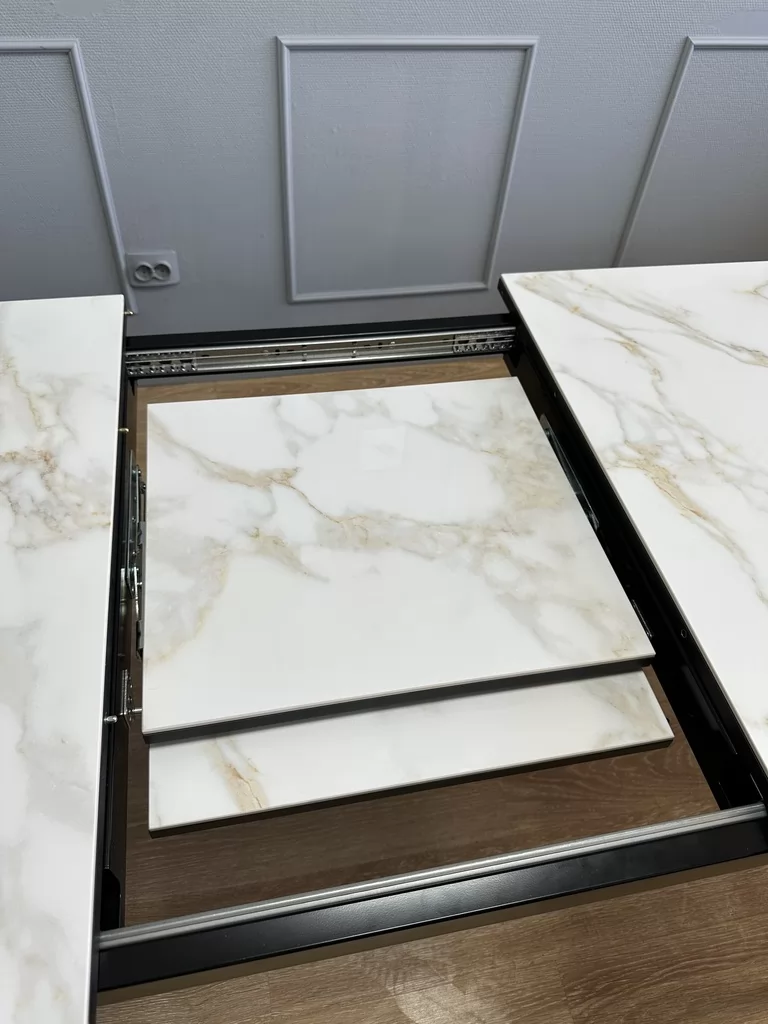Стол с керамической столешницей и красивыми, функциональными опорами. Керамических столов такого размера очень мало, а размер 120*80 см оптимален для кухни до 13 м. Система раскладки увеличивает стол еще на 45 см благодаря синхронному механизму раздвижения и прогрессивного механизму вставки "дельфин". Вставка с керамикой очень тяжелая и требует специального механизма, предназначенного для керамики. Стол сможет разложить даже ребенок. Стол идеален для того, чтобы не занимать половину кухни.
