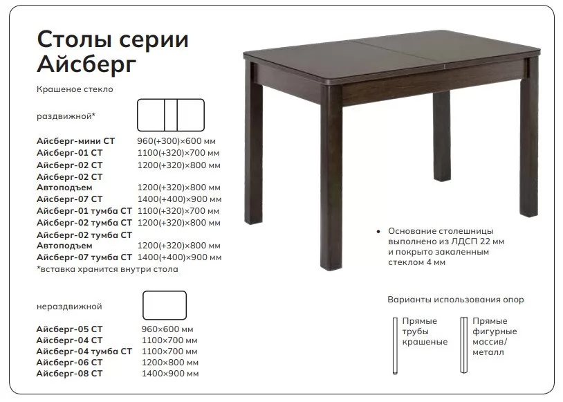 Айсберг-04 СТ. НЕраздвижной прямоугольный стол. Столешница выполнена из ЛДСП 22 мм с закаленным стеклом, торцы столешницы облицованы кромкой ПВХ .