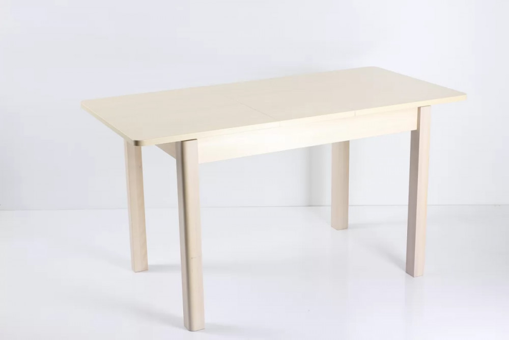 Раздвижной прямоугольный стол. Столешница выполнена из МДФ в ПВХ 22мм. В базовой комплектации ноги из массива березы в цвет основания стола.