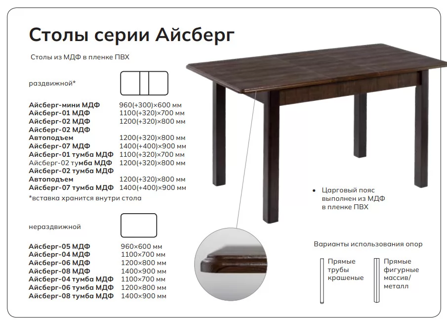 НЕраздвижной прямоугольный стол. Столешница выполнена из МДФ в ПВХ 22мм.