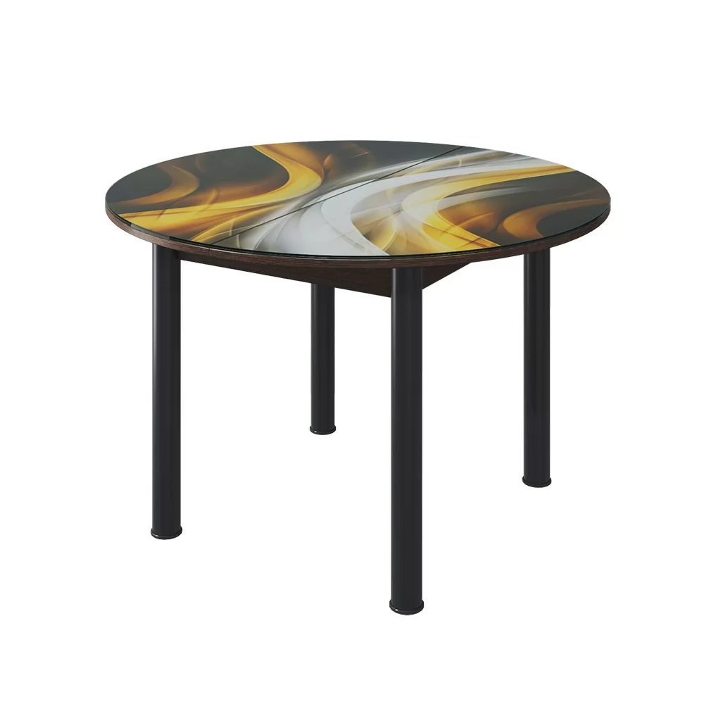 Стол круглый Бостон раздвижной, фотопечать Охра/венге/черные опоры брифинг в Тюмени