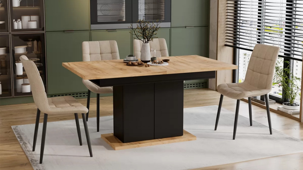 Стол раздвижной «Детройт» Тип 1 Черный, Дуб Крафт золотой в Тюмени