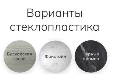 Варианты Стеклопластика: Бискайская сосна, Черный мрамор, Фристайл;