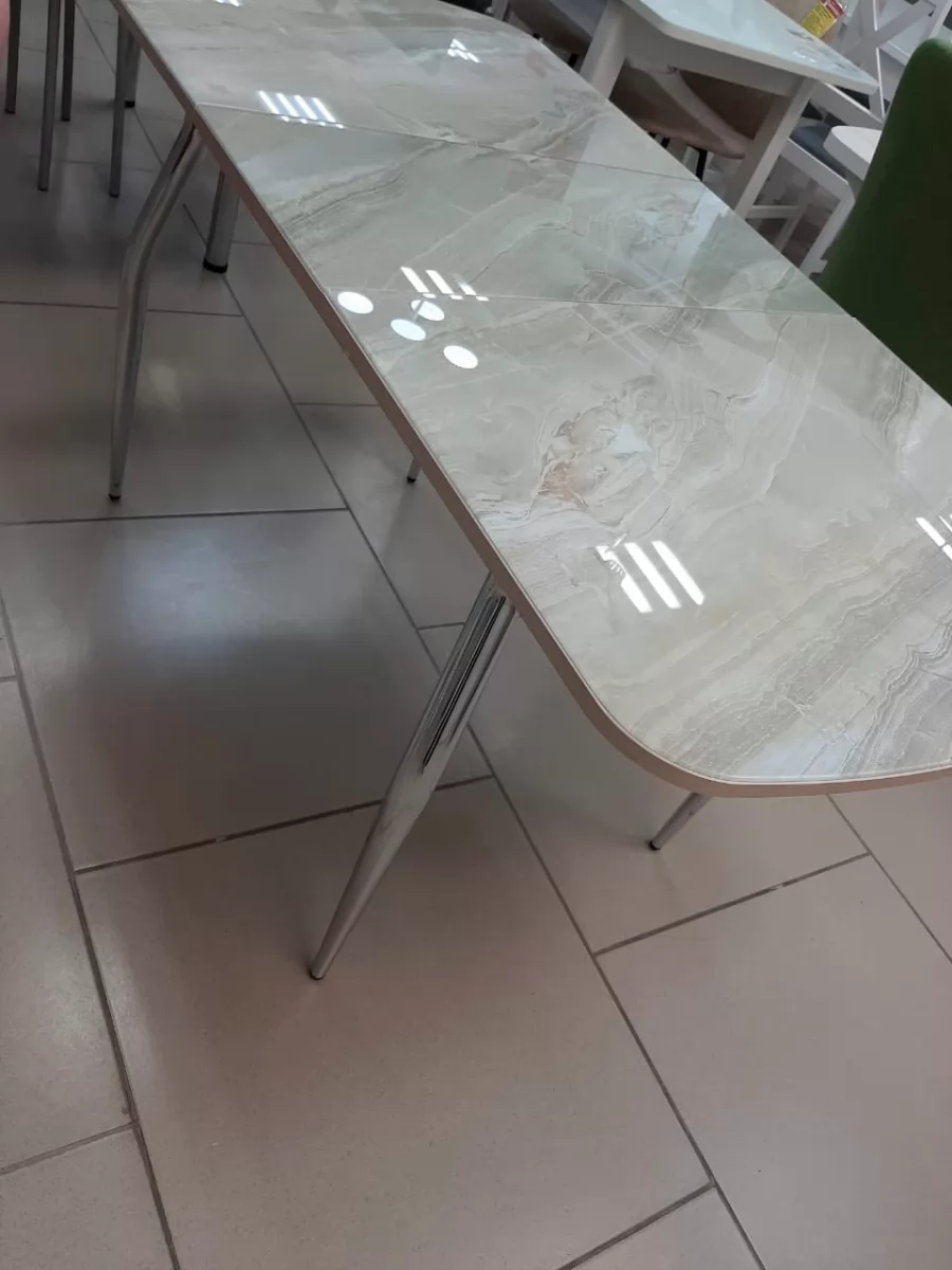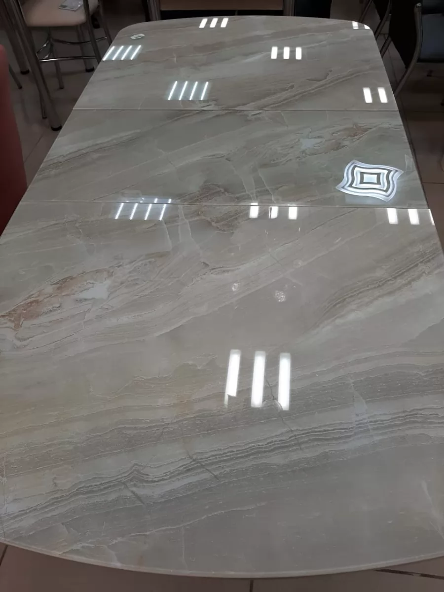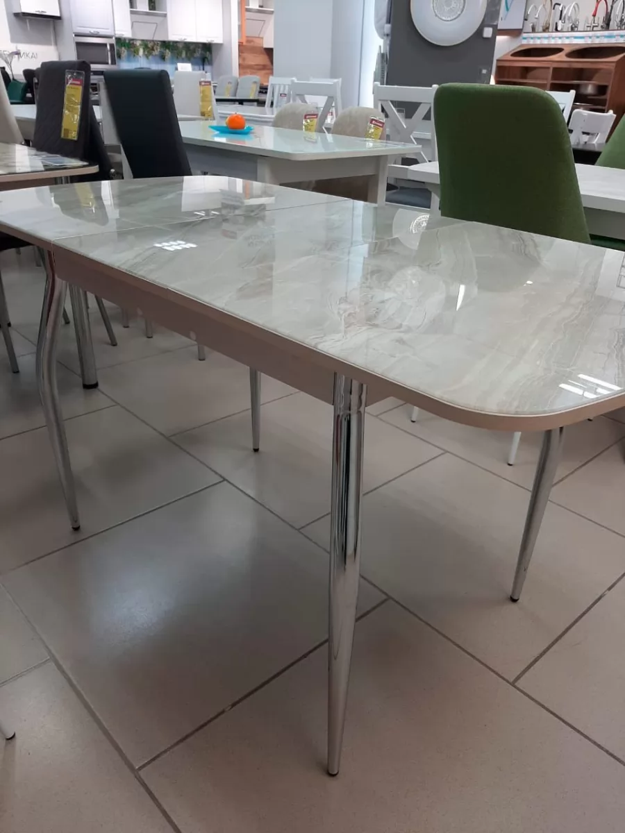 Стол Бостон-3 раздвижной, ф/п Мрамор светлый, белый/хром брифинг в Тюмени