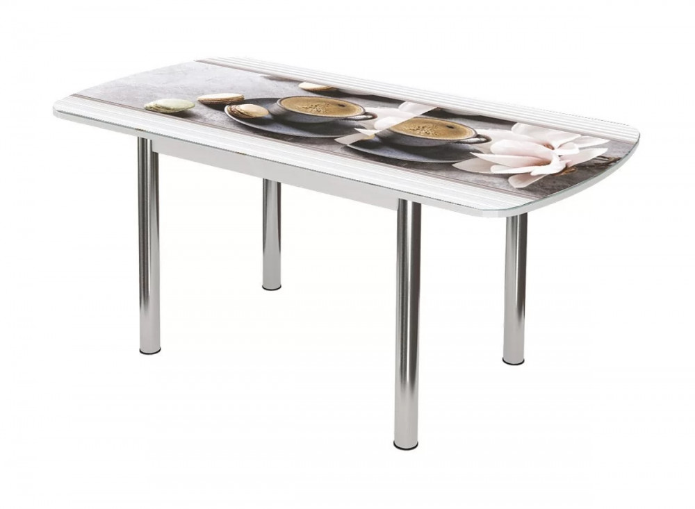 Стол Бостон-3 раздвижной, фотопечать Кофе макарун/белый/хром брифинг в Тюмени