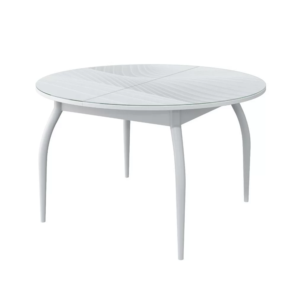 Стол круглый Бостон раздвижной, фотопечать Жемчуг/белый/белые опоры брифинг в Тюмени
