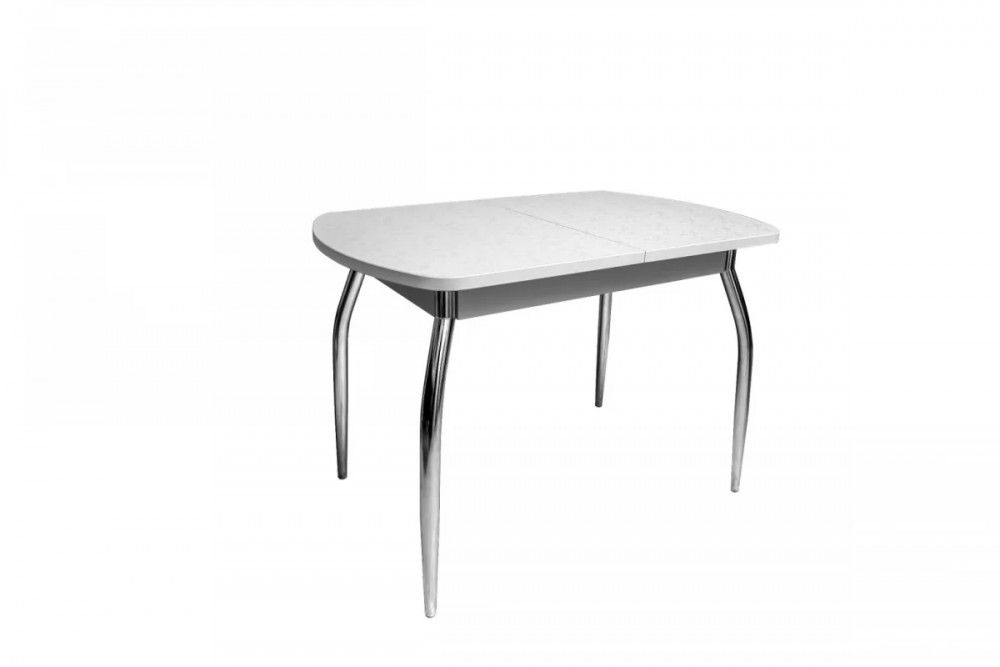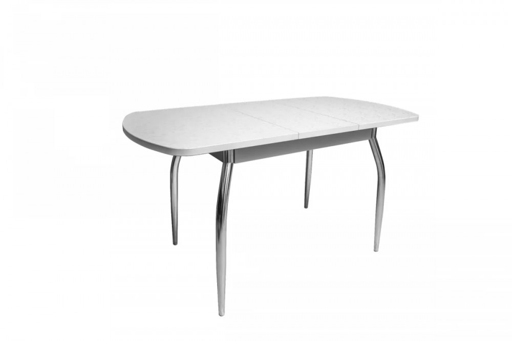 Стол (раздвижной) выполнен из ДСП 26мм покрытый пластиком HPL, вставка 30 см хранится внутри стола. В базовой комплектации опоры гнутые хром