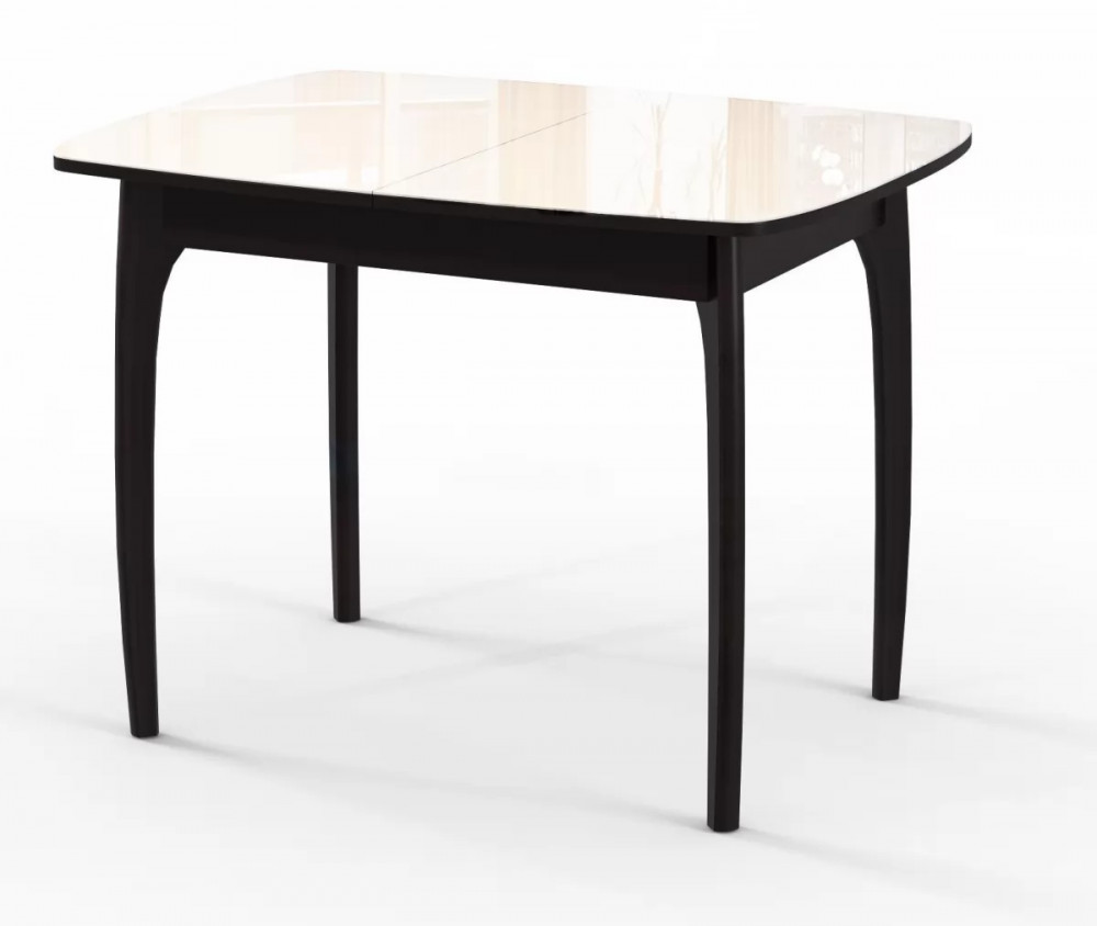Столешница стола выполнена из ЛДСП 16мм, покрыта пленкой ПВХ и стеклом 4мм. Ножки стола выполнены из массива бука. Механизм раскладывания: синхронный.