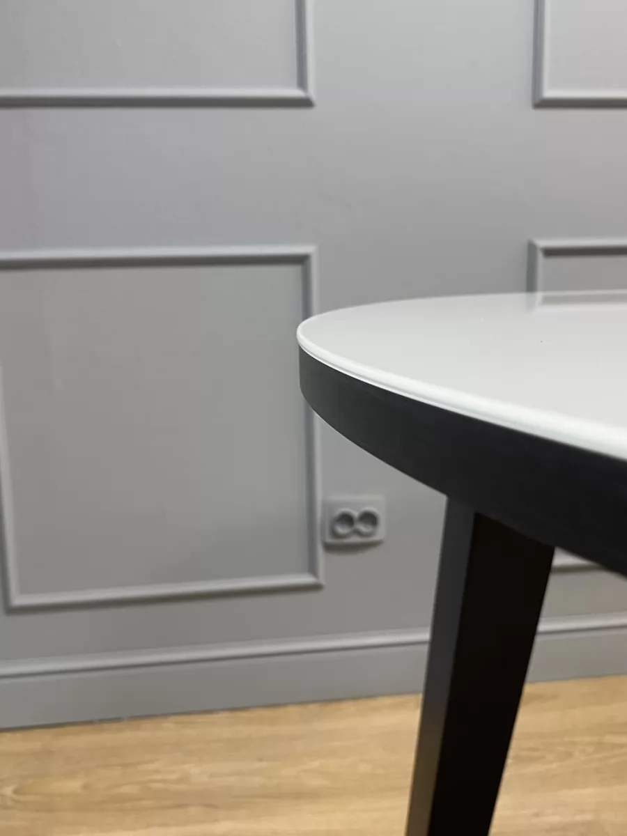 Стол с классической формой столешницы и удобной геометрией (можно ставить вплотную к стене широкой стороной) и увеличенным местом для размещения по узким краям стола. В то же время, все углы скруглены большим, травмобезопасным радиусом. Под столешницей места так же предостаточно. Можно разместить 2 стула шириной до 47 см.