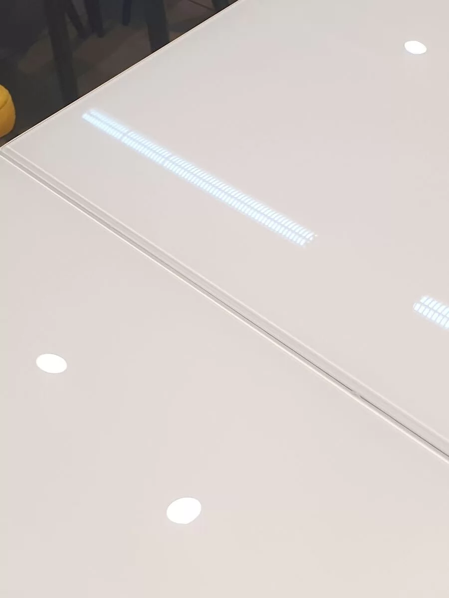 Материал столешницы - стекло на подложке из ЛДСП. Толщина стекла - 4мм, толщина подложки - 16мм.