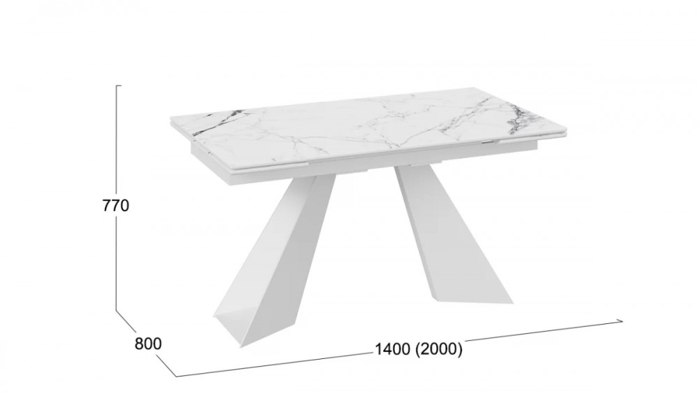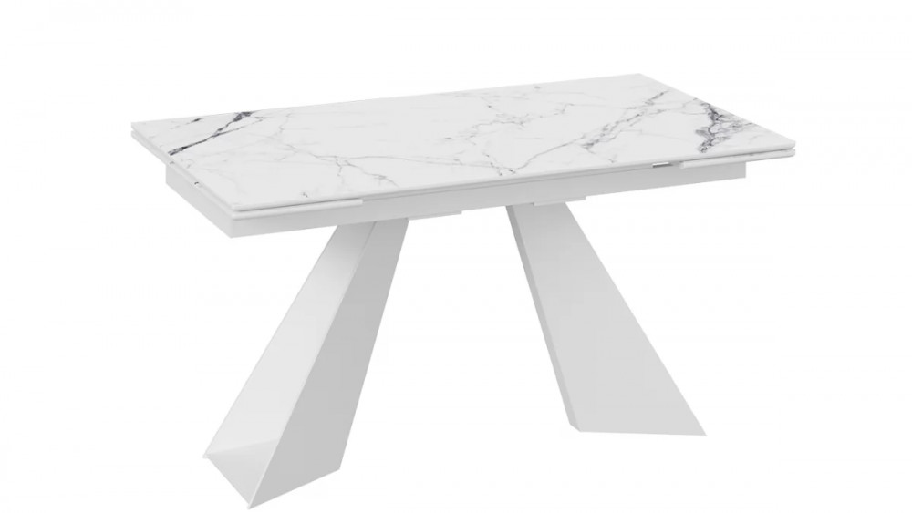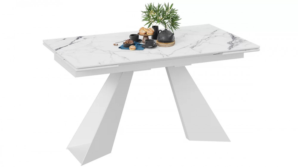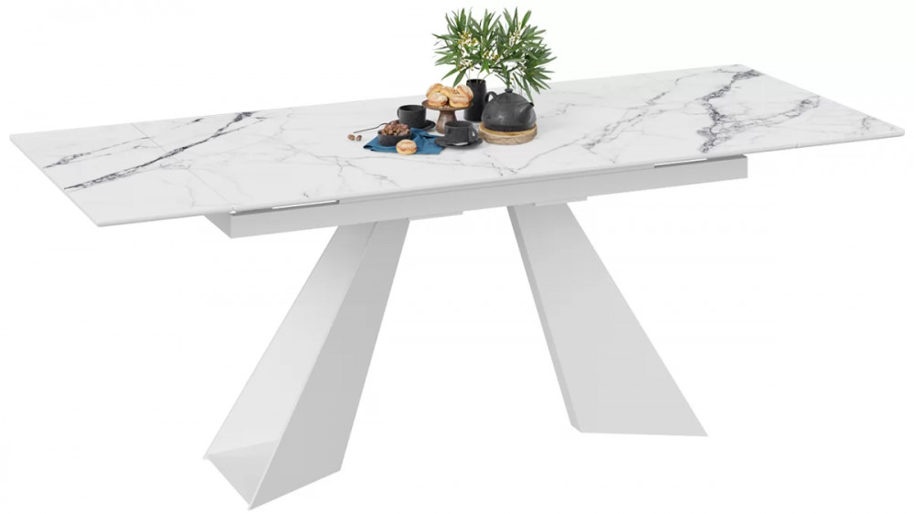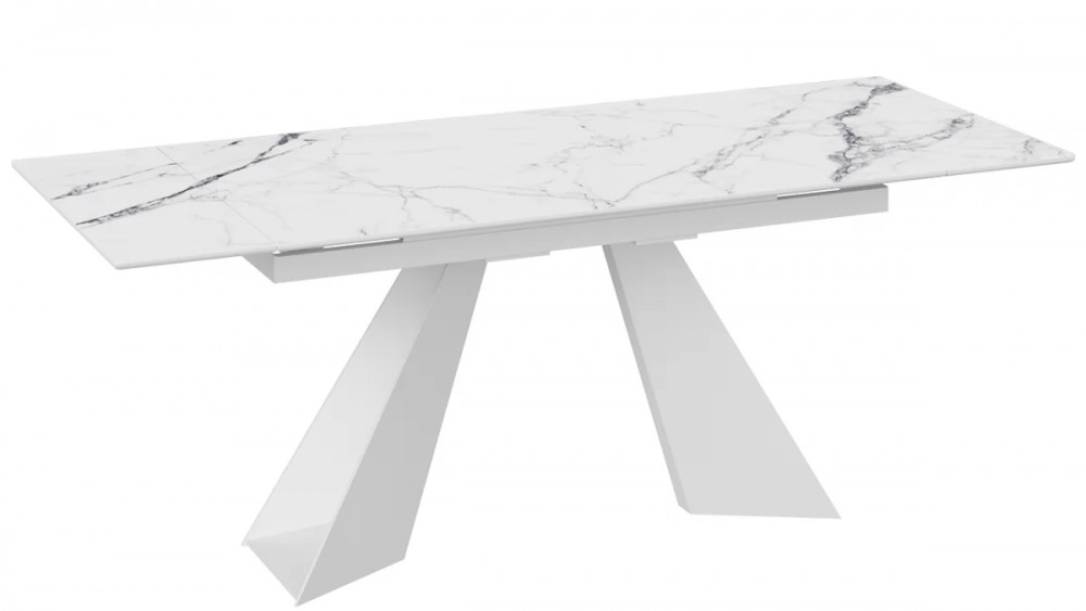 Стол обеденный «Гермес» Белый муар, Стекло глянцевое белый мрамор в Тюмени