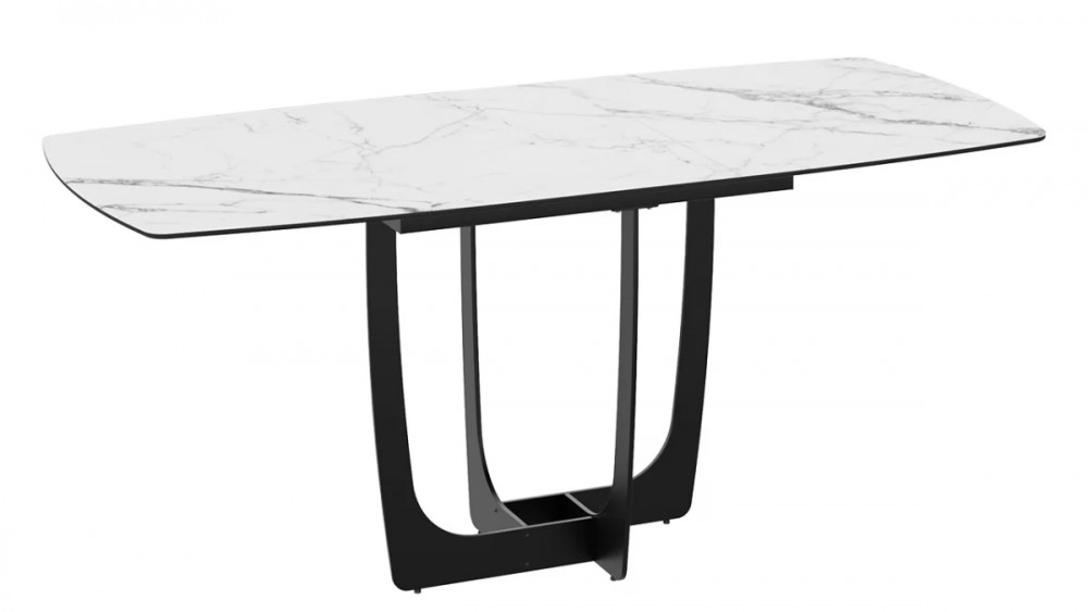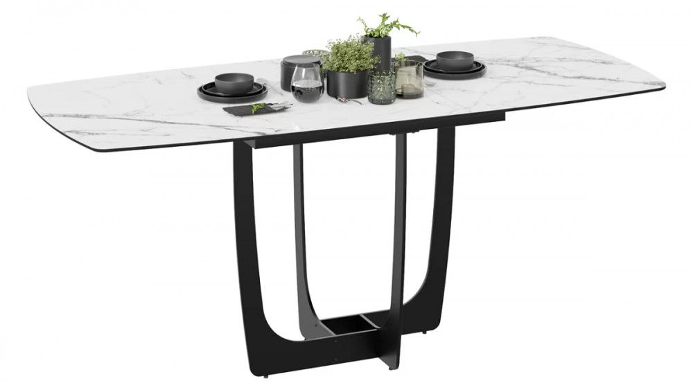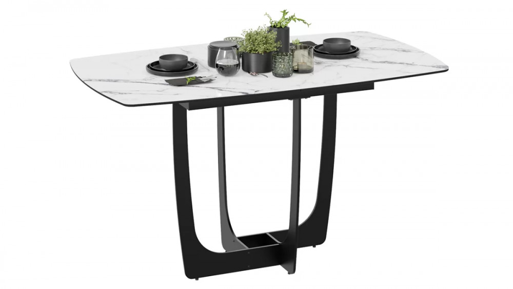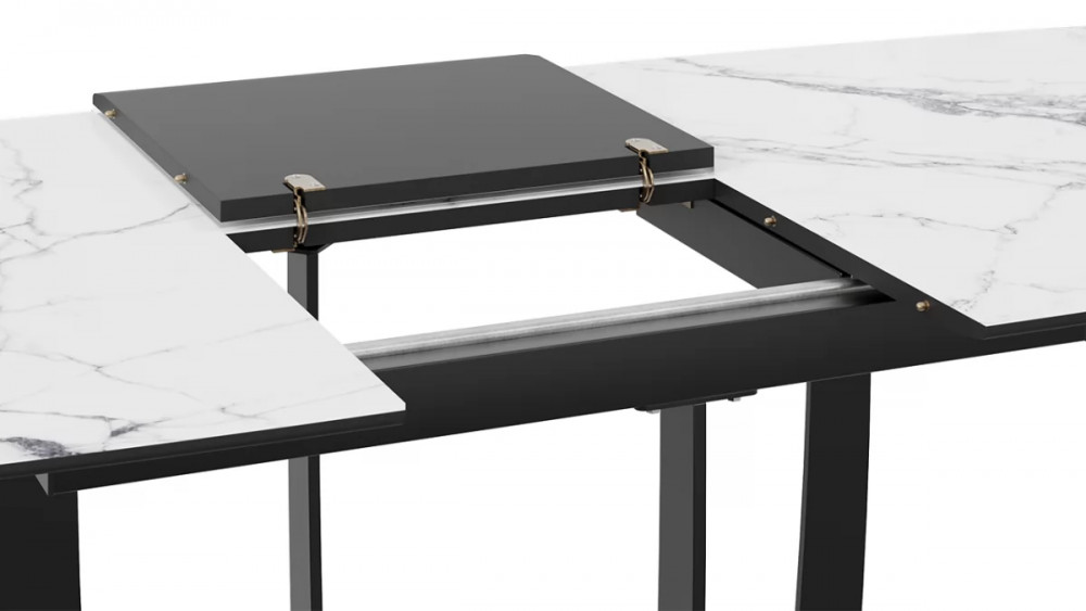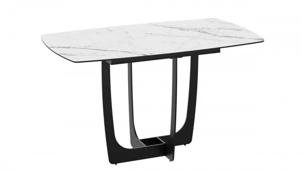 Стол обеденный «Орфей» Черный муар, Стекло глянцевое белый мрамор в Тюмени