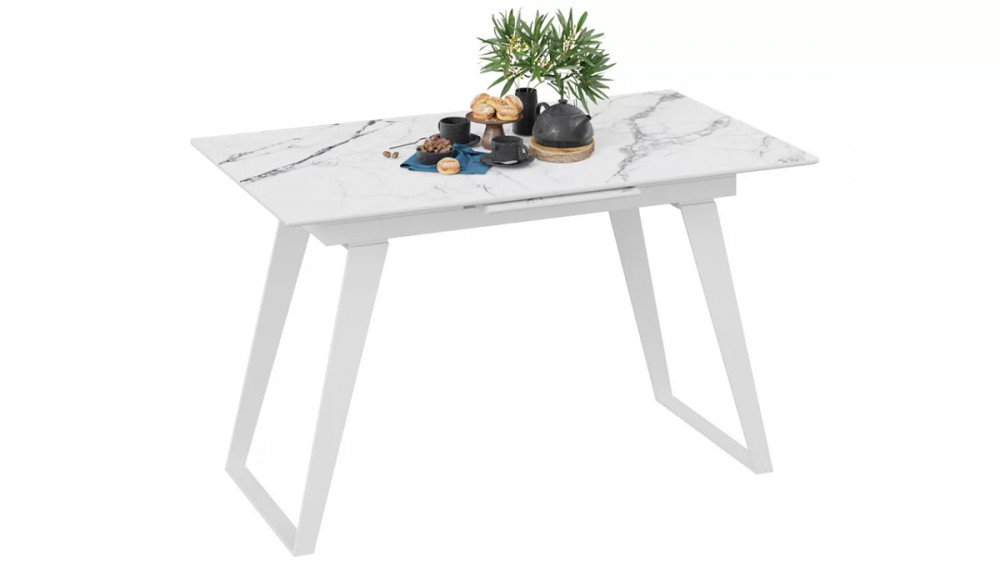 Стол обеденный «Техно» Белый муар, Стекло глянцевое белый мрамор в Тюмени