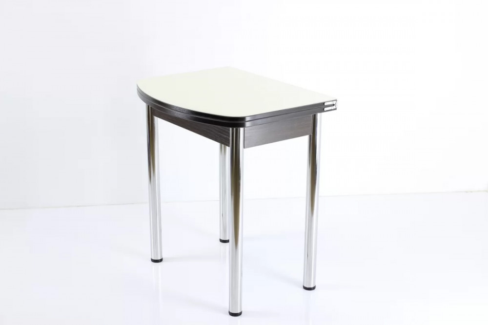 В сложенном состоянии верхняя столешница с окрашеным закаленным стеклом 4мм