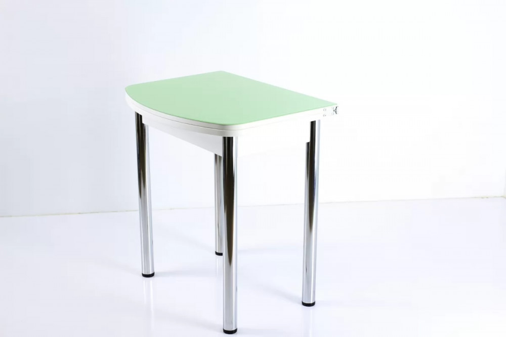 Стол приставной поворотно-раскладной. Столешница выполнена из ламинированного ДСП. В базовой комплектации опоры прямые хром. В сложенном состоянии верхняя столешница с окрашеным закаленным стеклом 4мм
