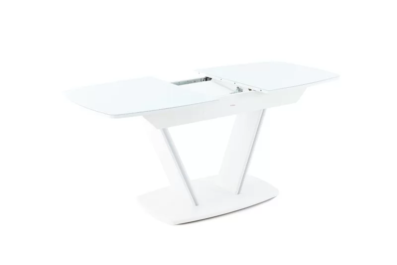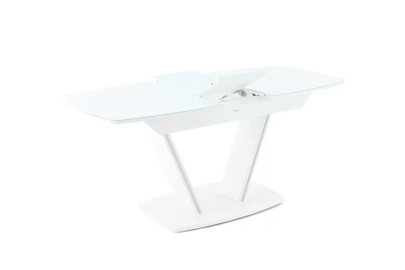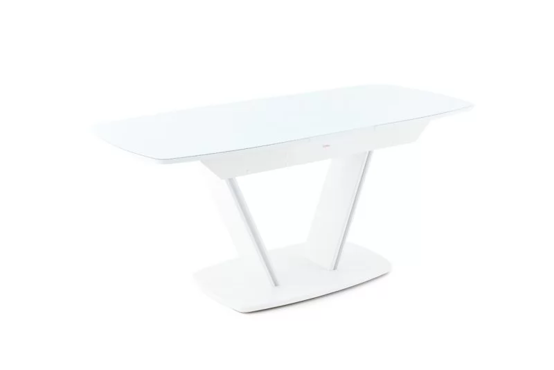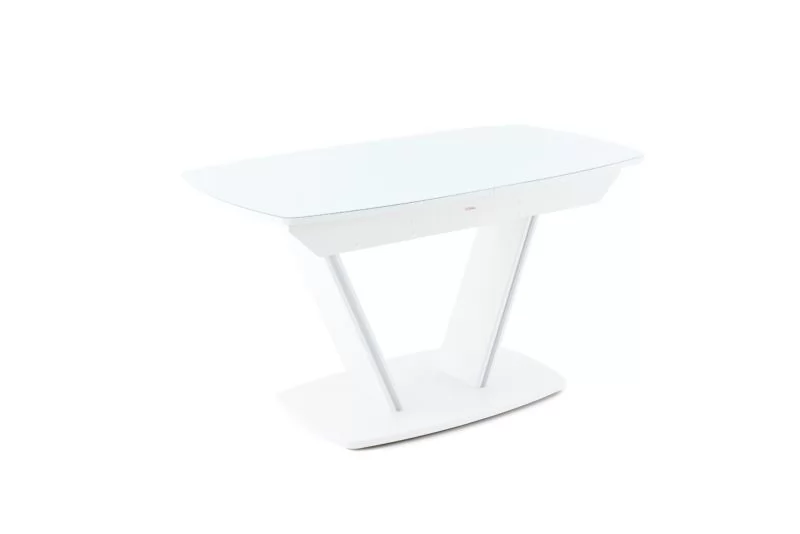 Стол раздв. ДРЕЗДЕН (1300/1615*800*763мм), стекло Белый опти/ЛДСП, МДФ Белый матовый шагрень в Тюмени