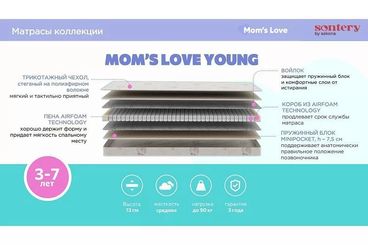 Матрас MOM'S LOVE Young 700*1600мм (пена/войлок, чехол хлопок, ср. жесткости h 13см) в Тюмени