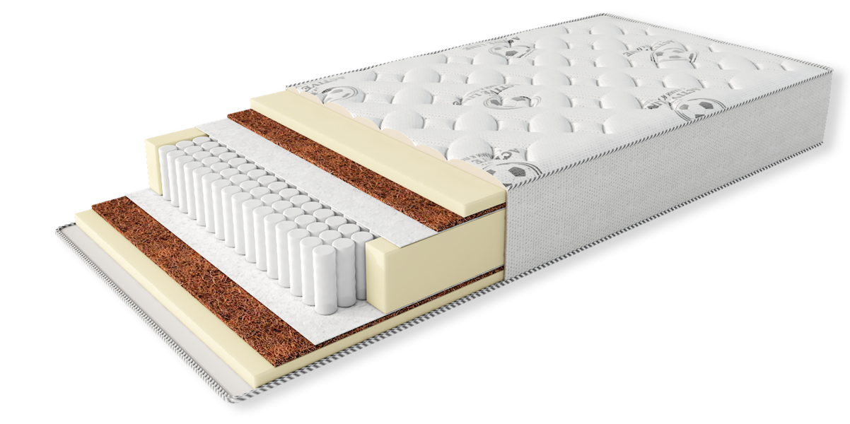 | Кокосовое волокно - Наполнитель из спрессованных волокон кокосового ореха, пропитанных специальным составом на основе натурального латекса. Чрезвычайно прочен и долговечен, придает упругость и жесткость. | |