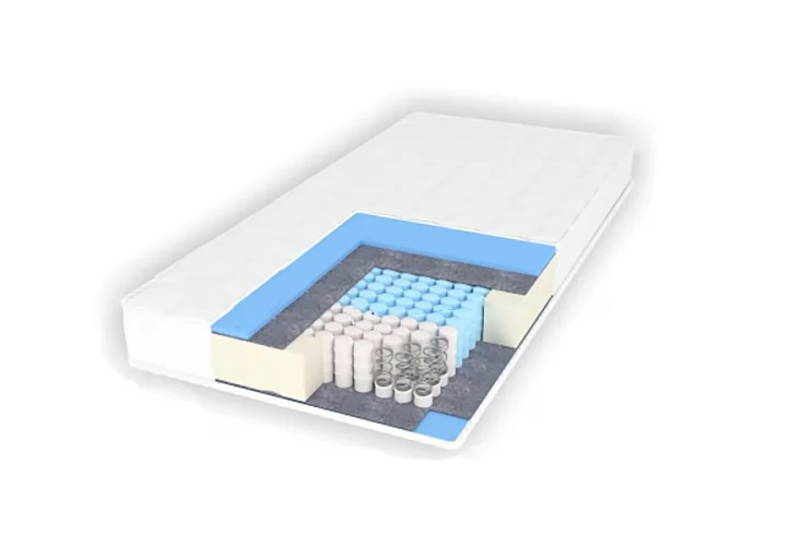 - Материал — Чехол: ткань хлопок, стёганая с Hollcon, ортопедическая пена 2 см, термовойлок S.Wool, усиление матраса по периметру, 5-ти зональный анатомический пружинный блок MultiStrong 1000