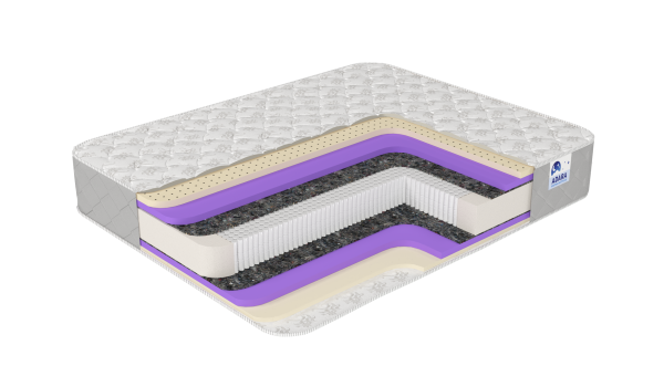 Состав слоев: Memory Foam, Натуральный латекс, Eco Foam, Трикотажаж, Термовойлок, Блок независимых пружин S1000