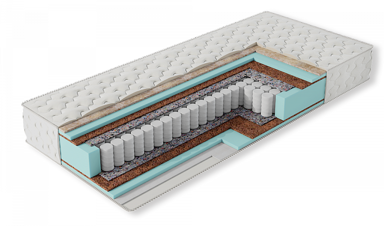 Ортопедический матрас средней степени жесткости на основе пружинной системы "Pocket Spring" (250 шт/м2). В качестве наполнителей используются материалы – натуральное кокосовое волокно и пенополиуретан. Пенополиуретан придает спальному месту комфорт и мягкость, а кокос – жесткость. Матрас обладает свойствами "Зима/Лето", с одной стороны используется хлопковый наполнитель, который обеспечивает легкую прохладу в летнее время, а с другой стороны шерстяной наполнитель - тепло и уют зимой.Описание