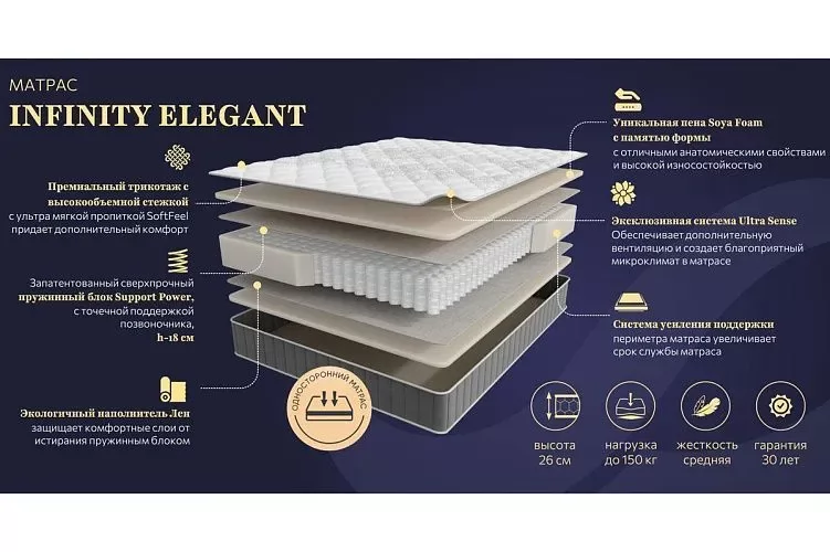 Матрас INFINITY ELEGANT 1800*2000мм (Пена/лен, ср.жесткий, h 26см) в Тюмени