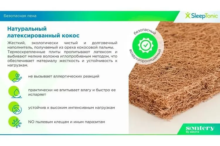 - Слой матраса 2: Кокос