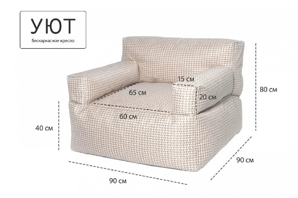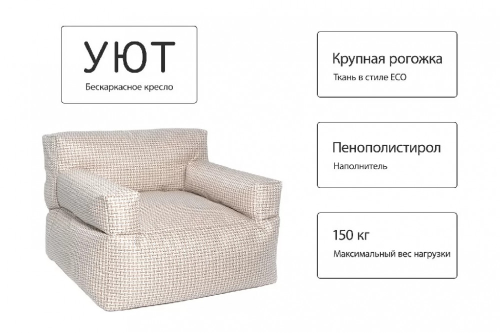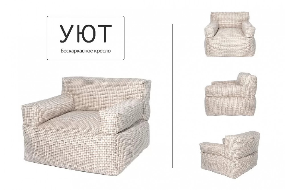 Бескарскасное кресло УЮТ, рогожка бежевый в Тюмени