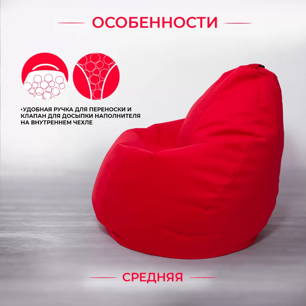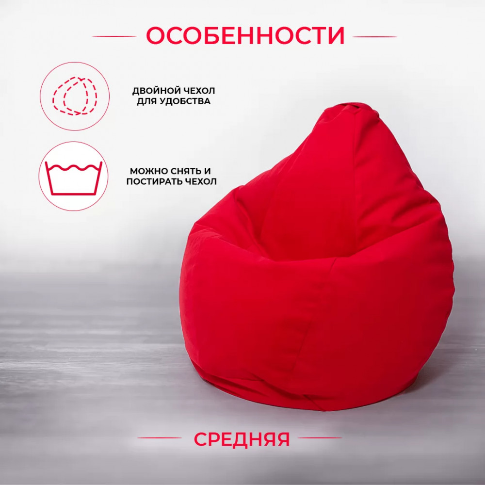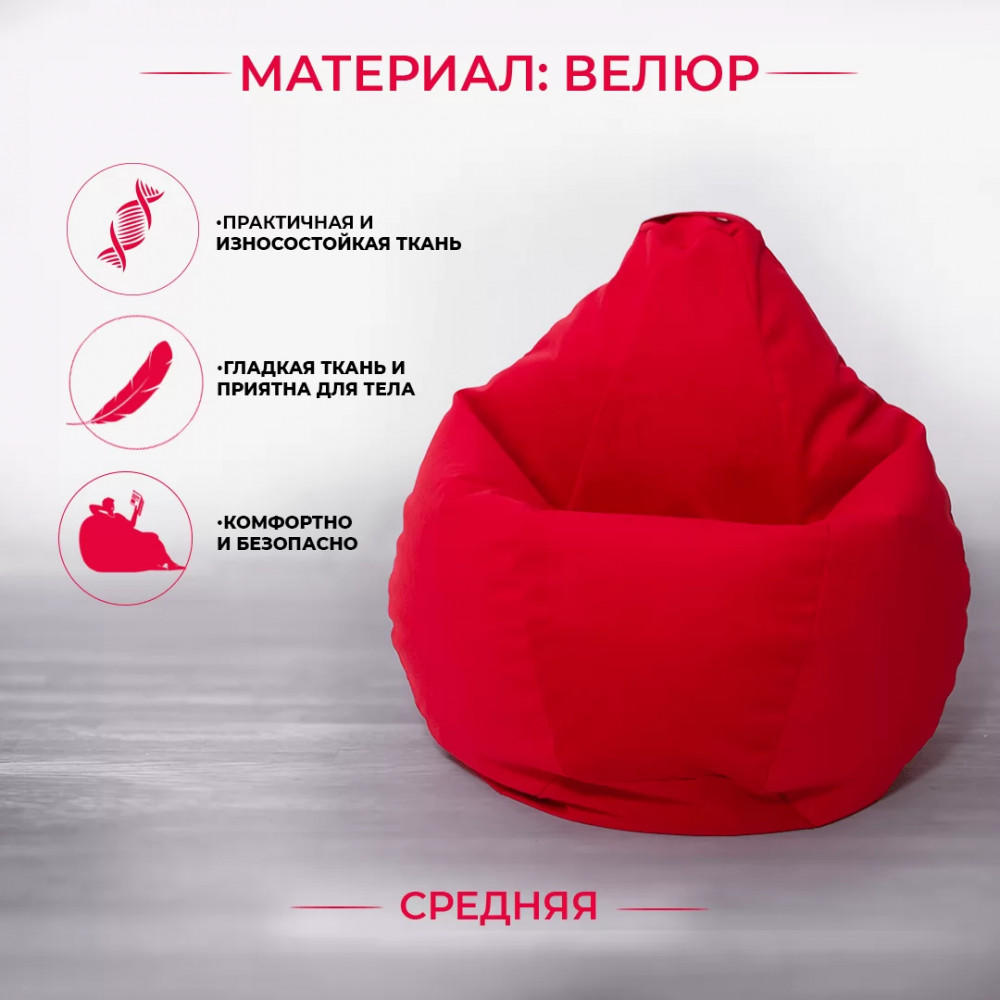 Кресло-мешок Груша средняя, велюр, цвет Красный в Тюмени