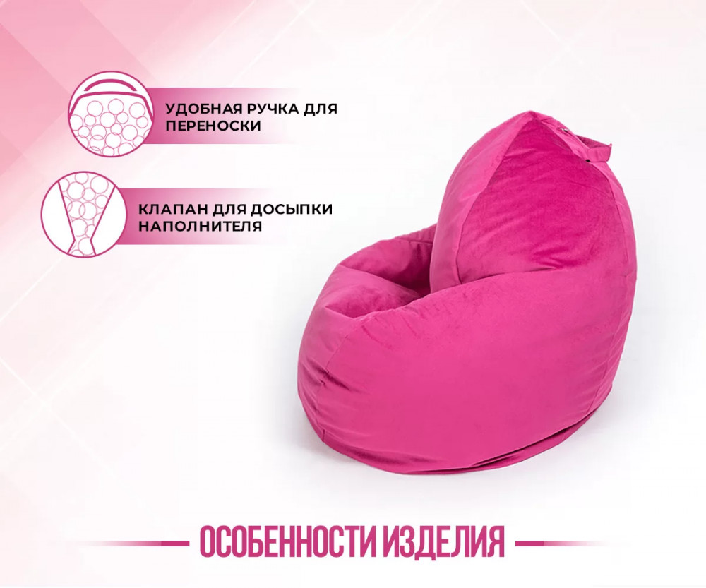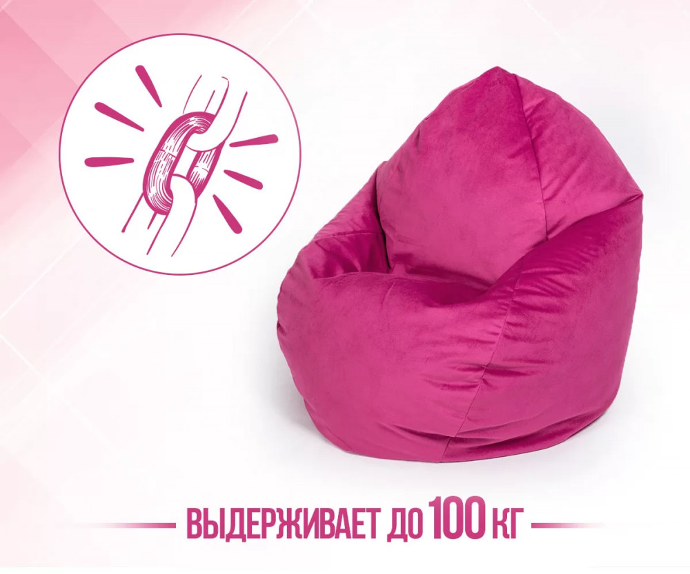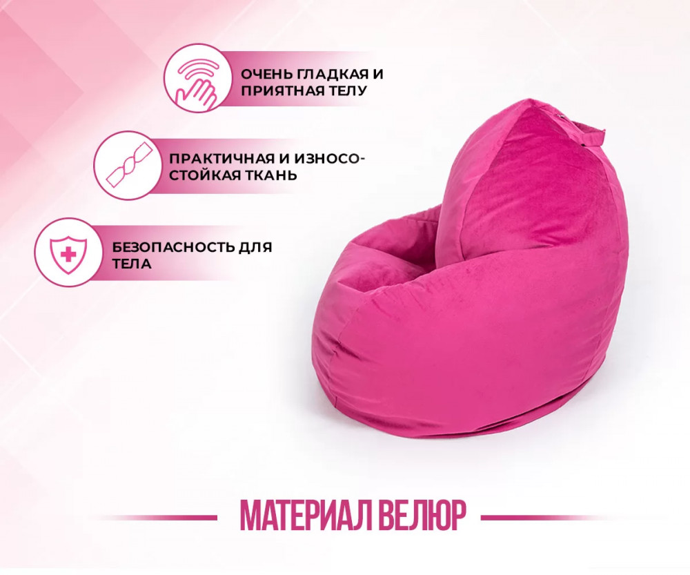 Кресло-мешок Груша средняя, велюр, цвет Малиновый в Тюмени