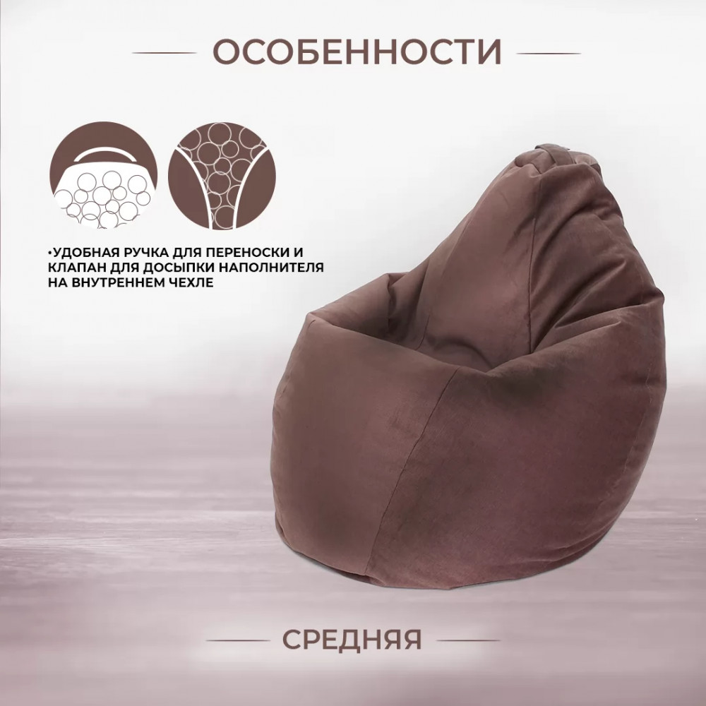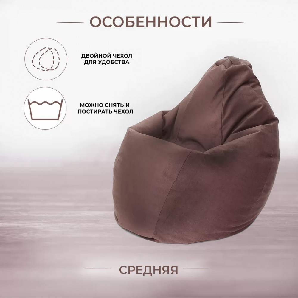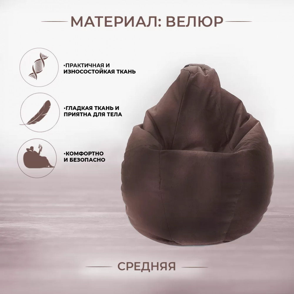 Кресло-мешок Груша средняя, велюр, цвет Шоколад (коричневый) в Тюмени