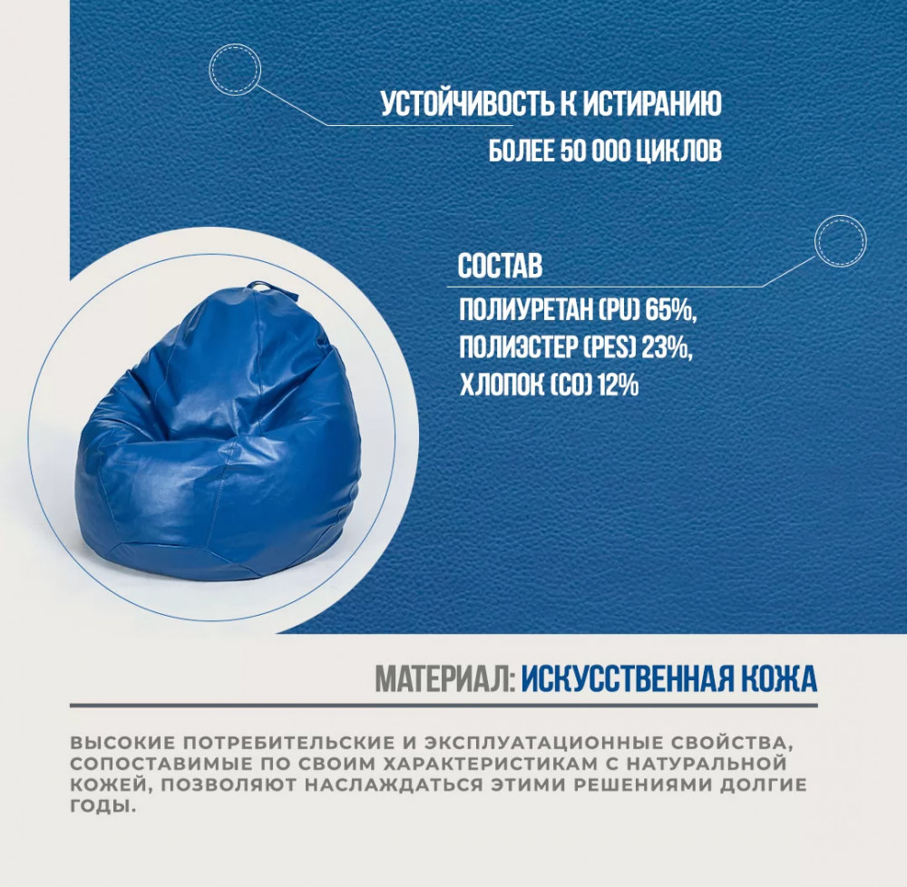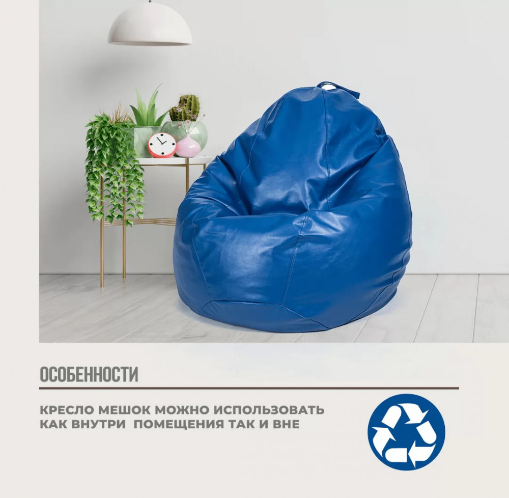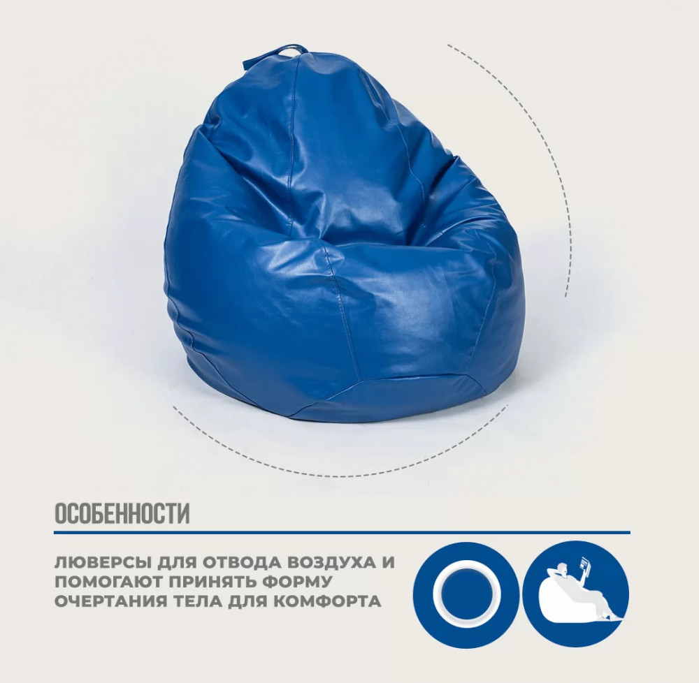 Кресло-мешок "ЛЮКС" Большая, к/з цвет синий в Тюмени