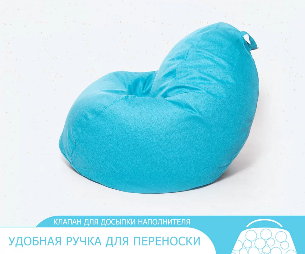Двойной чехол упрощает уход за креслом, его можно снять и постирать. Удобная ручка для переноски и клапан для досыпки наполнителя на внутреннем чехле.