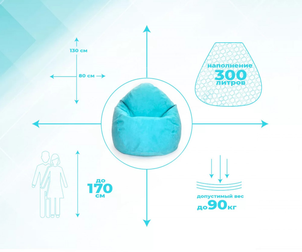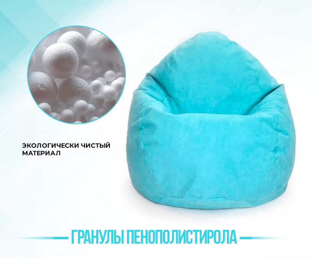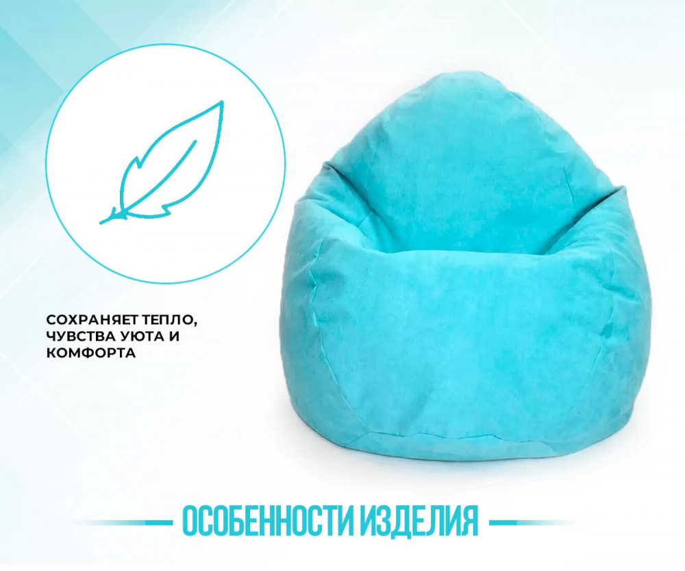 Кресло-мешок СТАДИ, велюр, цвет бирюзовый в Тюмени