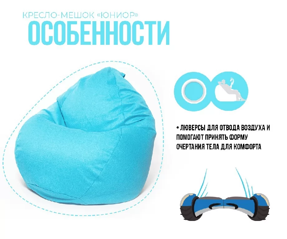 Кресло-мешок Юниор, рогожка, цвет бирюзовый в Тюмени
