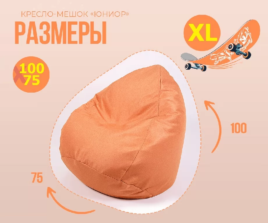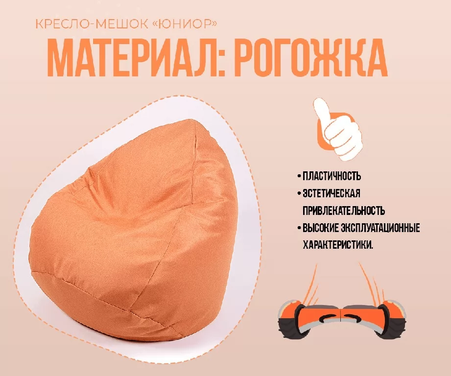 Кресло-мешок Юниор, рогожка, цвет оранжевый в Тюмени