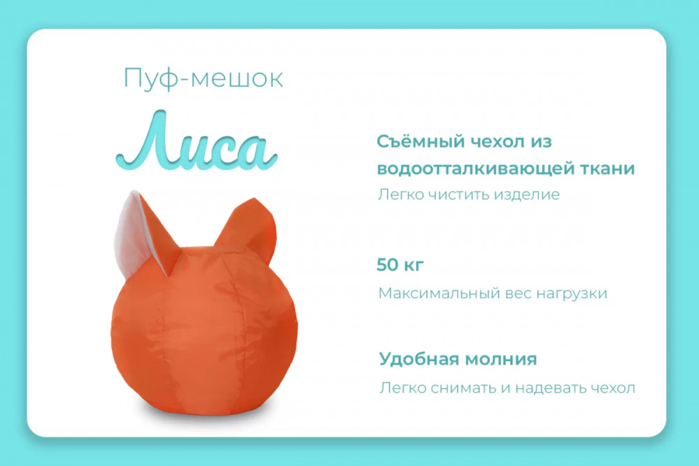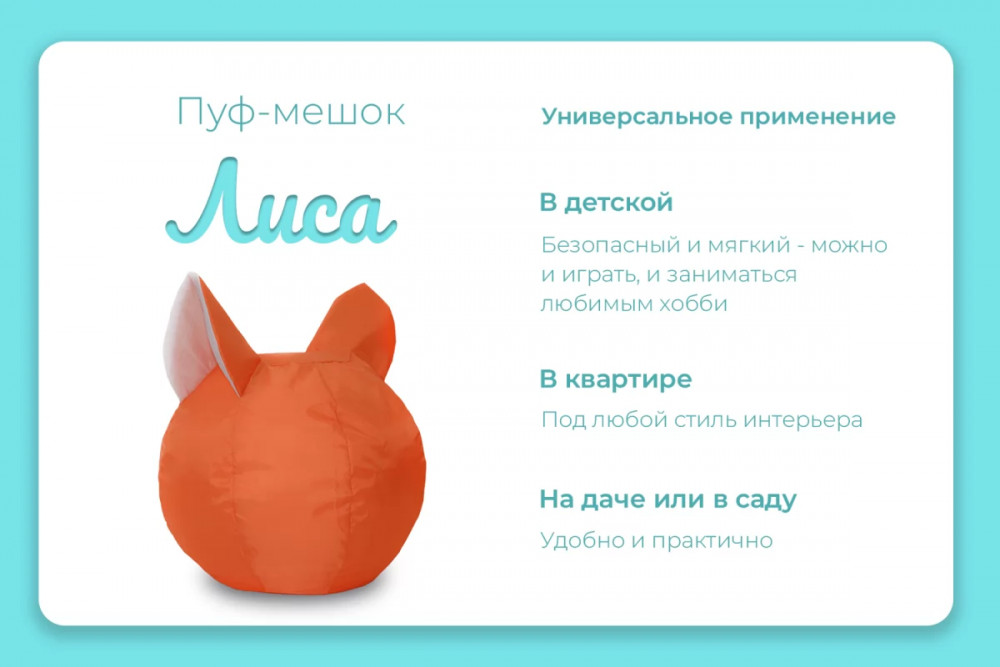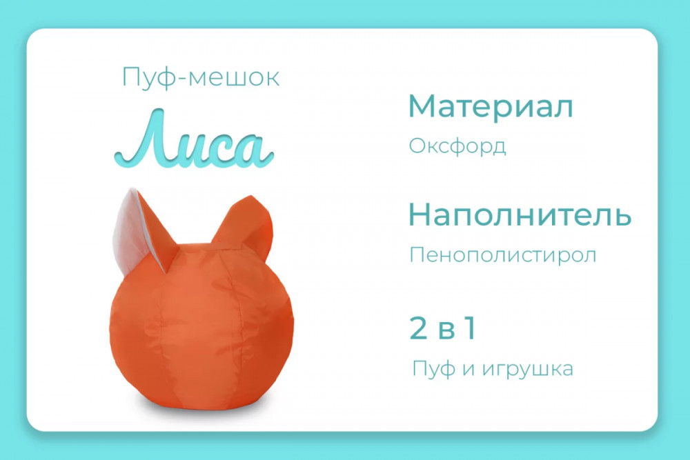 Пуф-мешок "Лиса" малое, цвет оранжево-белый в Тюмени