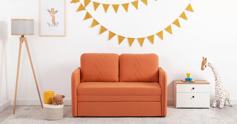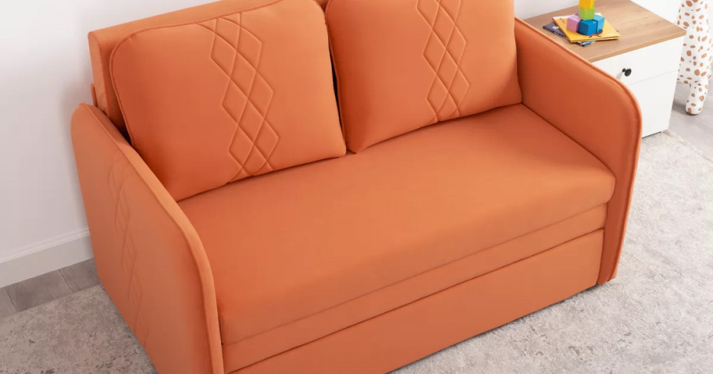 Стильный компактный диван для детской и гостиной. При своих скромных размерах он трансформируется в полноценное спальное место для детей и подростков. Лаконичный дизайн в виде декоративной отстрочки подчеркивает фактуру велюра, а небольшие размеры позволят разместить его в любом пространстве.