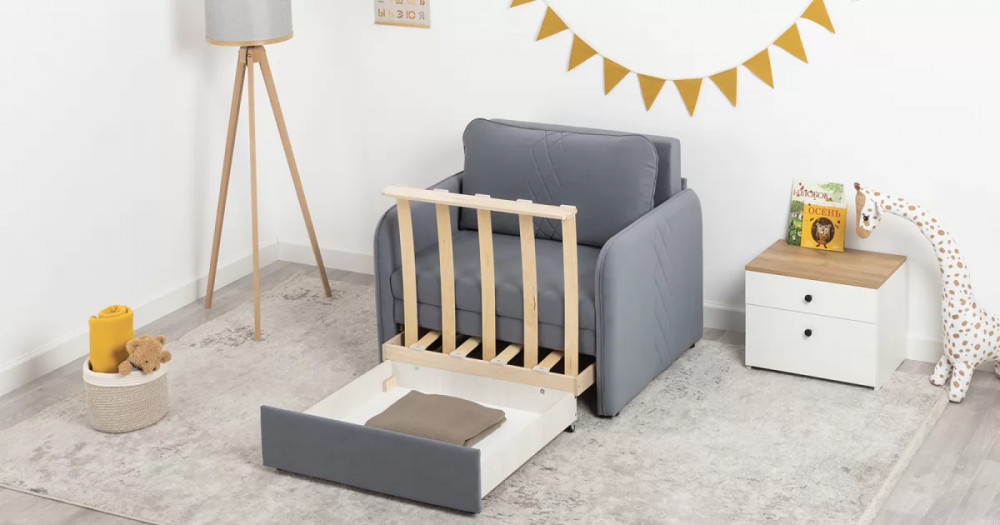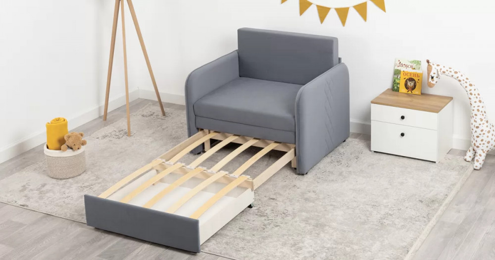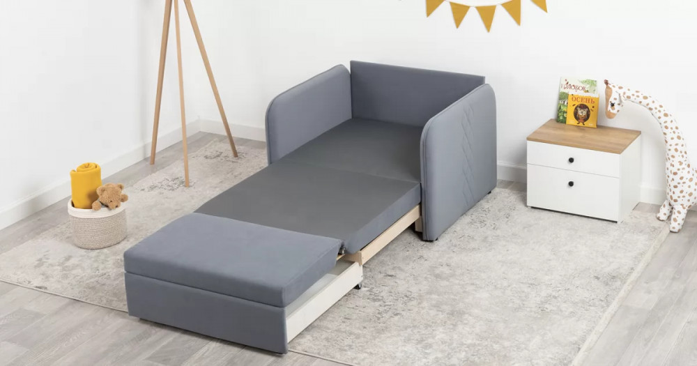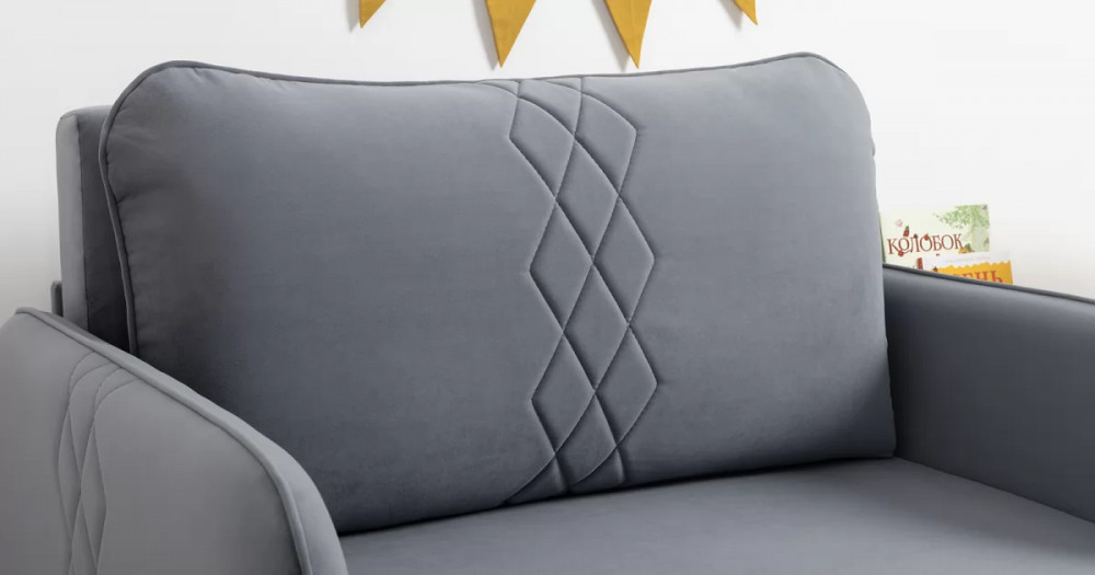 Стильный компактный диван для детской и гостиной. При своих скромных размерах он трансформируется в полноценное спальное место для детей и подростков. Лаконичный дизайн в виде декоративной отстрочки подчеркивает фактуру велюра, а небольшие размеры позволят разместить его в любом пространстве.