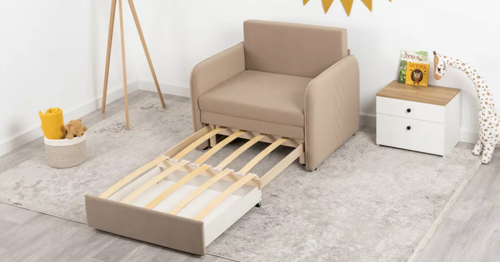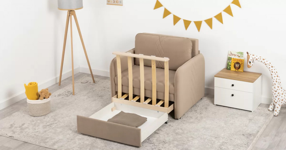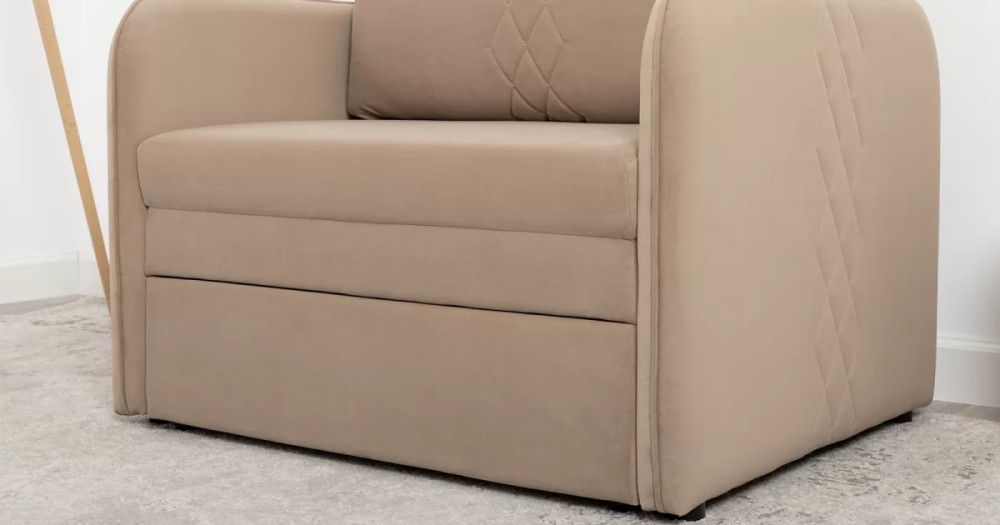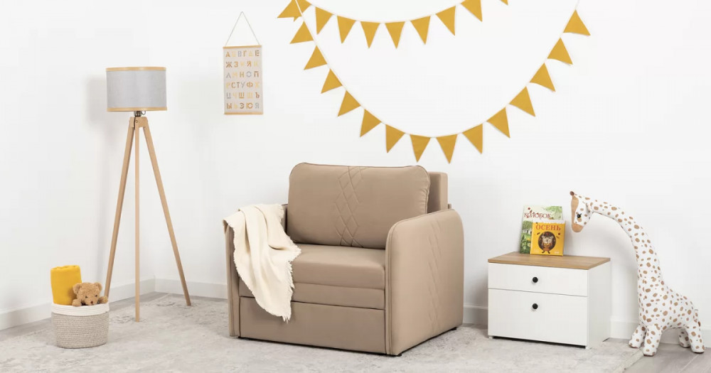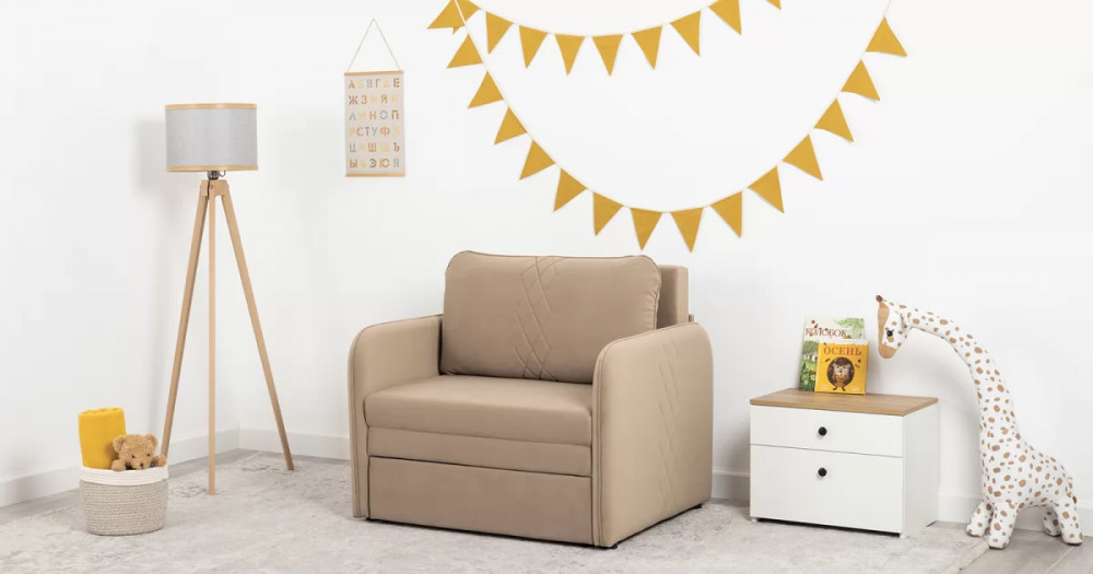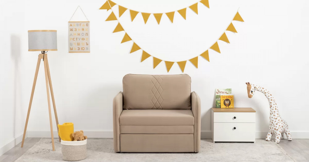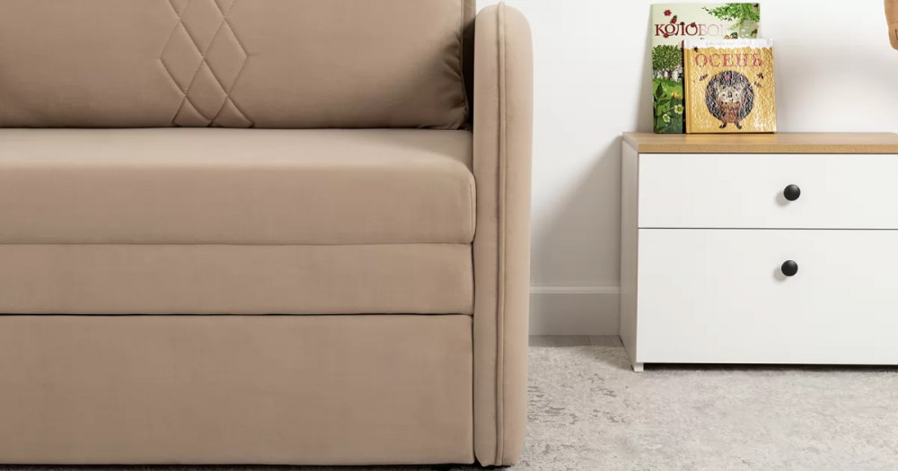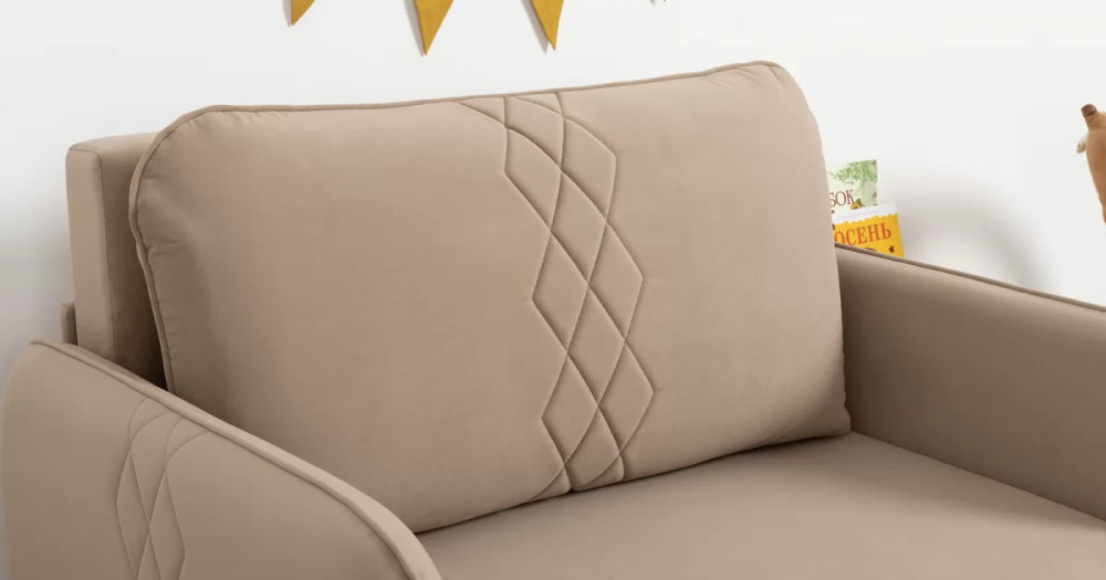 Стильный компактный диван для детской и гостиной. При своих скромных размерах он трансформируется в полноценное спальное место для детей и подростков. Лаконичный дизайн в виде декоративной отстрочки подчеркивает фактуру велюра, а небольшие размеры позволят разместить его в любом пространстве.