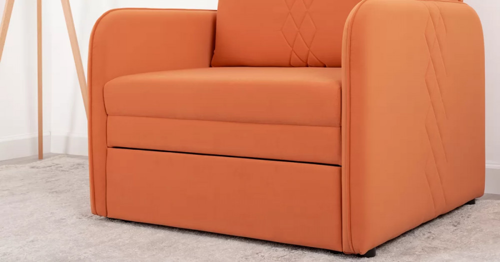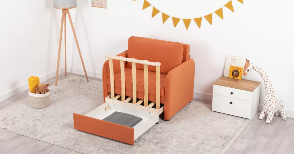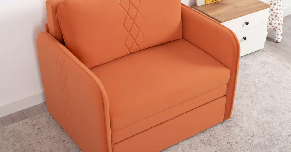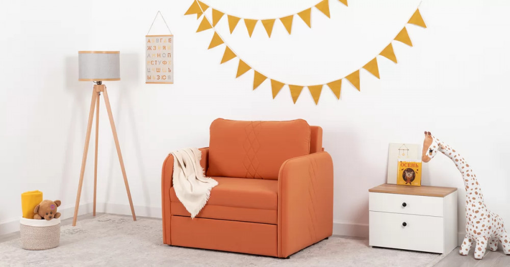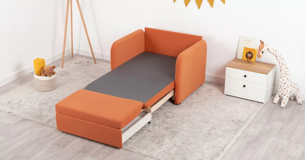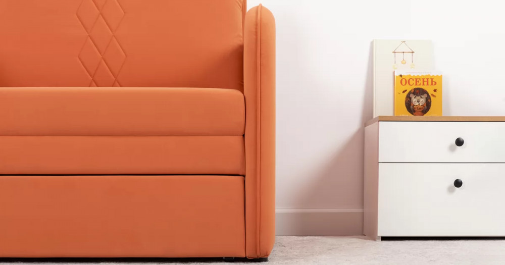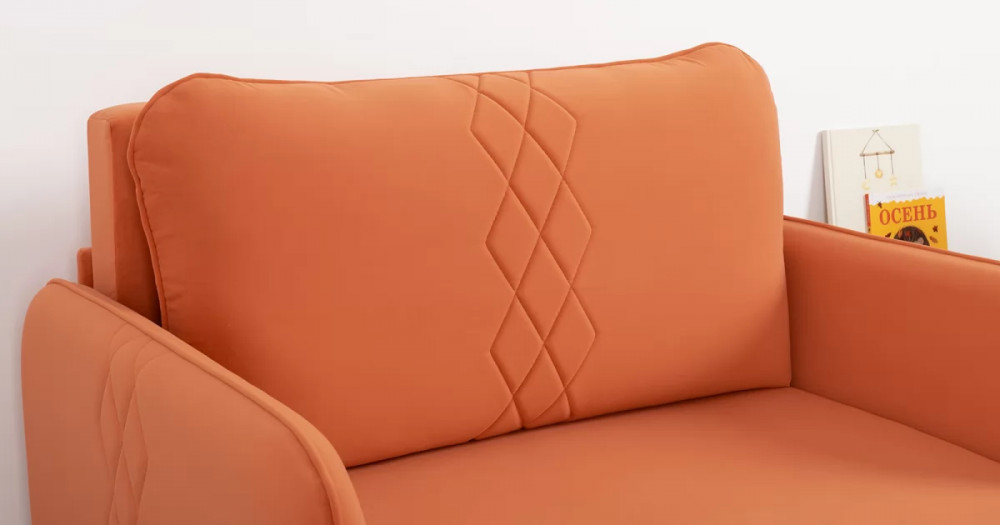 Стильный компактный диван для детской и гостиной. При своих скромных размерах он трансформируется в полноценное спальное место для детей и подростков. Лаконичный дизайн в виде декоративной отстрочки подчеркивает фактуру велюра, а небольшие размеры позволят разместить его в любом пространстве.