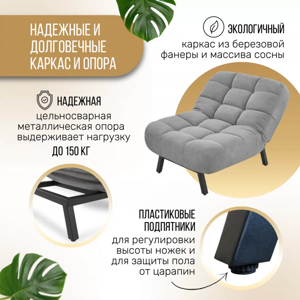 Благодаря, бархатистому велюру кресло дарит мягкие прикосновения телу, окутывая его