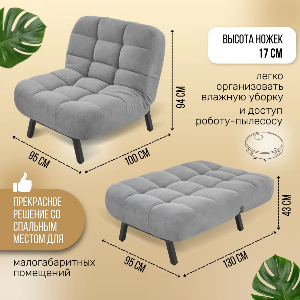 ножек у кресла - 17 см. Удобно проводить влажную уборку самостоятельно и при помощи