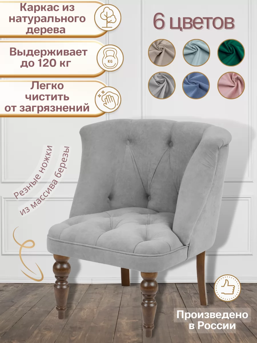 Шикарное кресло 7778 с каретной стяжкой прекрасно впишется как в классический, так и современный интерьер. Каркас изготовлен из массива дерева хвойных пород и березовой фанеры, наполнитель – пенополиуретан, что означает повышенную прочность и службу на долгие годы. У стула изящные передние резные ножки из натурального дерева белого цвета. Обивка из бархатистого велюра с влагоотталкивающей пропиткой, высокой износостойкостью, ее легко чистить. Кресло прекрасно подойдет для небольших помещений: компактной кухни, детской, коридора, комнаты, кабинета, офиса, фойе. Такое кресло никого не оставит равнодушным.