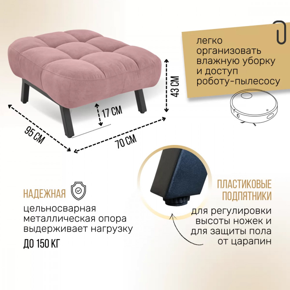 Пуф Vita прямоугольной формы 95 на 70 см, легко превратит ваш прямой диван в