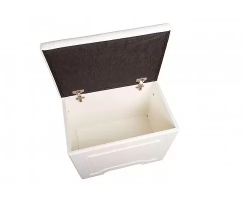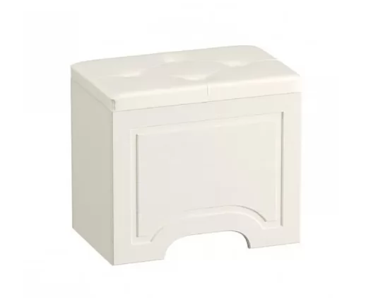 Пуф на колесах, подъемная крышка. Искусственная кожа белого цвета.